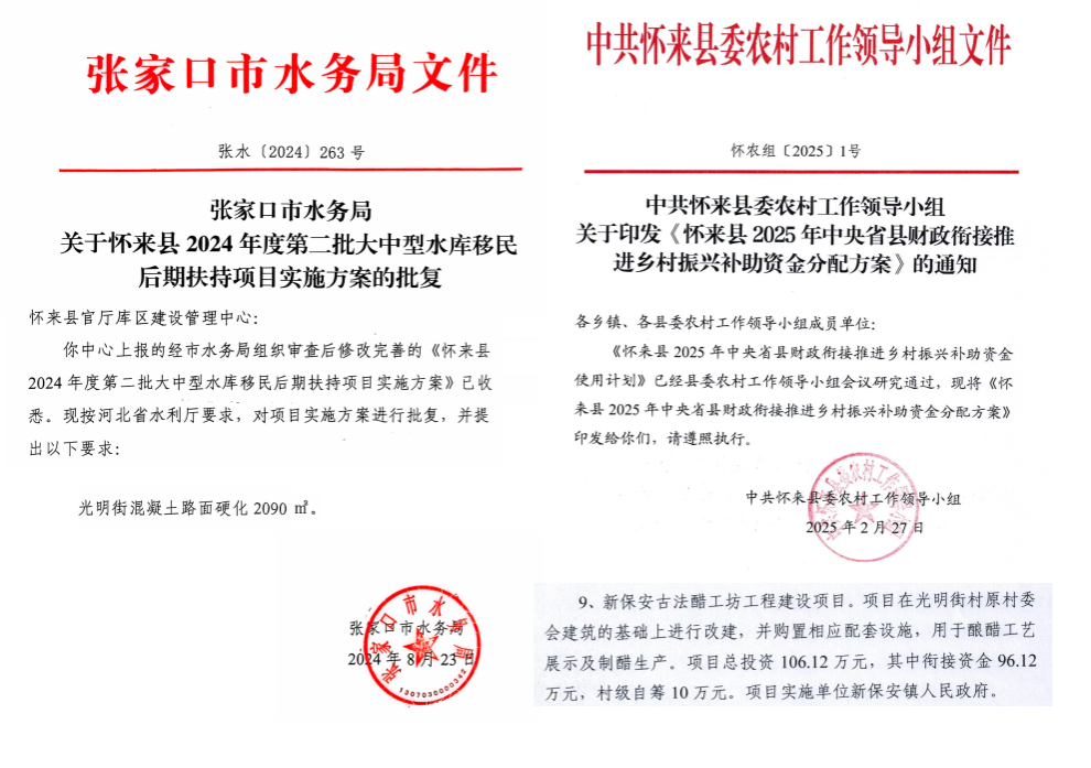 在产业发展方面,成功申报《新保安镇钟阁楼古法酿醋工坊》(获批中央财政资金96万余元)、《光明街新村硬化路面修缮泄洪渠》、《畜禽粪污无害化资源化利用》等项目,开辟强村富民新路径。