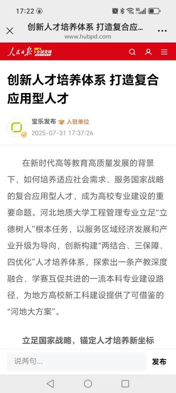 近日,人民日报网,中国网、人民网、河北日报等中央及省级主流媒体连续聚焦best365工程管理专业"两结合、三保障、四优化"育人模式。这是该专业继获评国家级一流本科专业建设点后,再次以"党建+专业"深度融合的创新实践赢得社会广泛认可。