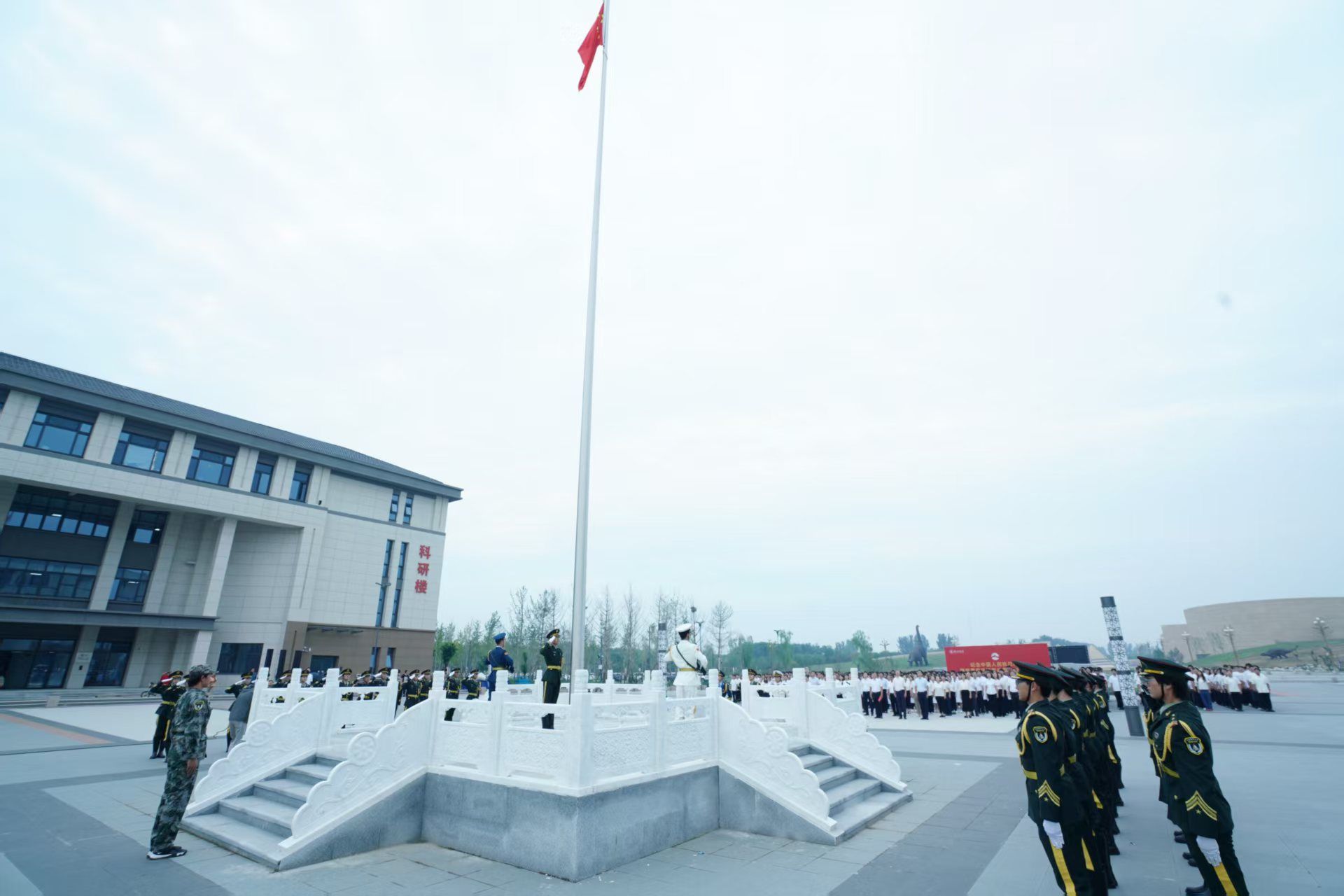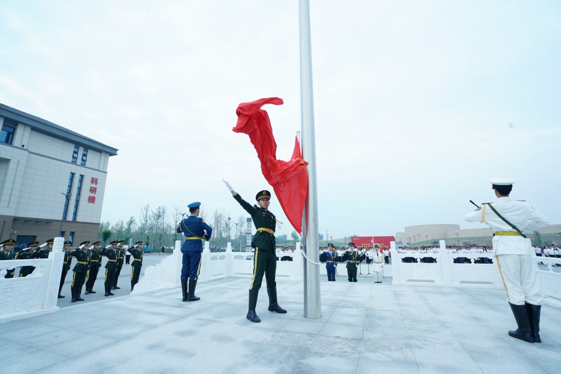 本次仪式旨在缅怀历史、致敬先烈,庄严纪念中国人民抗日战争暨世界反法西斯战争胜利80周年。伴随着庄严的国歌声,升国旗仪式正式开始。全体师生肃立行礼、高唱国歌,目光紧紧注视着五星红旗,见证它冉冉升起的每一个瞬间,内心充满对革命先辈的深切缅怀,以及对和平岁月的珍视与捍卫。