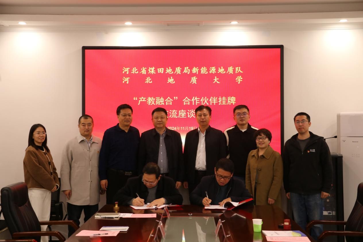 11月19日上午,副校长李彦苍带队与城市地质与工程学院院长袁颖、土木工程教研室主任谌会芹、城市地下空间工程教研室主任董宇苍一行4人,前往河北省煤田地质局新能源地质队开展“访企拓岗促发展”活动,并进行了“产教融合”签约交流座谈会。新能源地质队队长卢凤豪、总工程师牛小军、副队长侯方振、能源矿产检测中心主任吴铭、副主任宋宝瑞、项目负责人刘亚磊出席。
