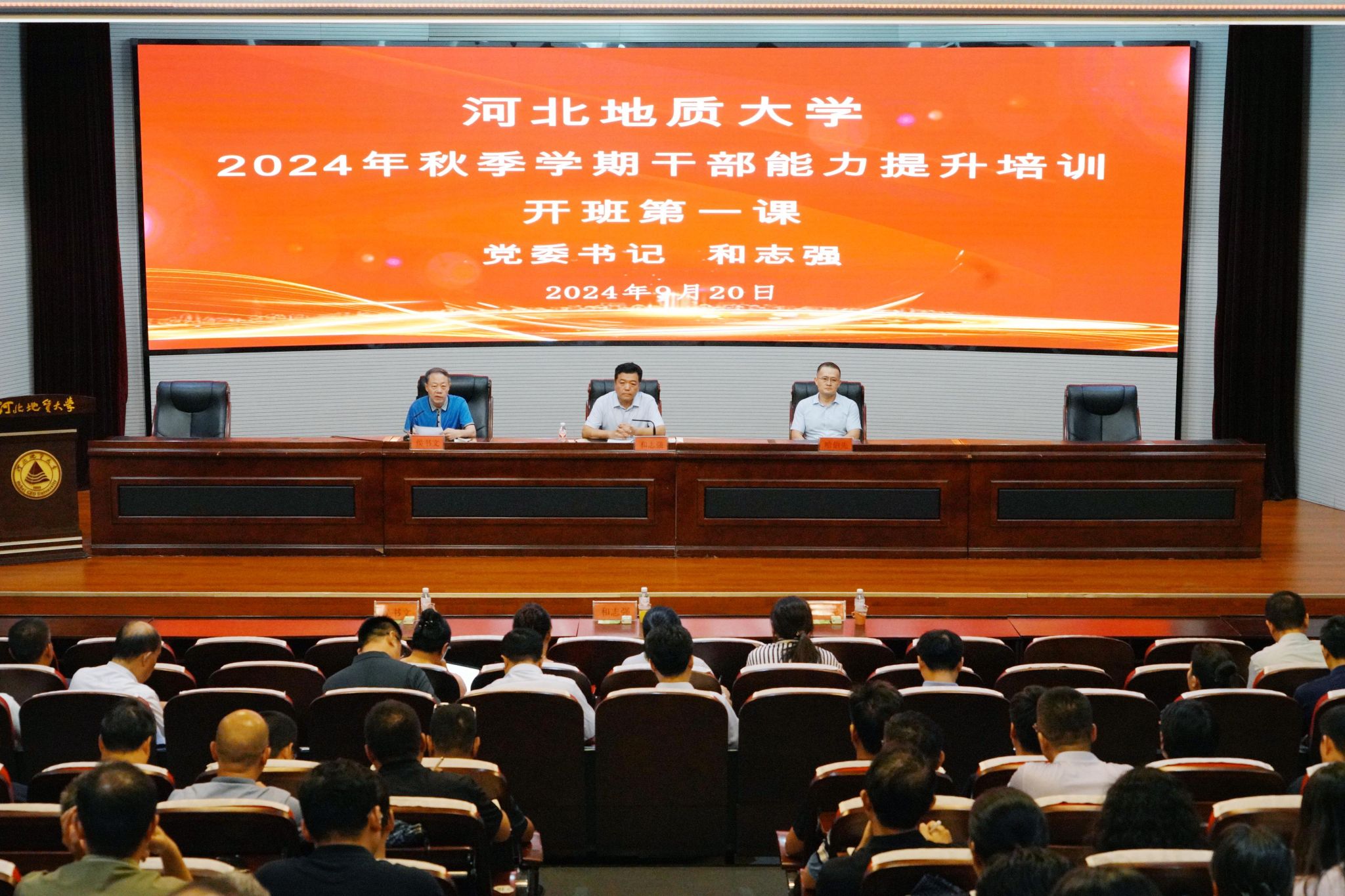 和志强代表校党委提了三方面要求,一要带着使命学,坚决做到政治清醒、信念坚定。切实加强党的全面领导,着力提升党建工作水平,把开展干部培训作为加强党的政治建设的切入点,着力锻造一支政治过硬、能力过硬、作风过硬的忠诚干净担当的高素质干部队伍。牢固树立“抓好党建就是最大政绩”的理念,把党建思政工作与教育发展事业深度融合,从习近平新时代中国特色社会主义思想中汲取政治智慧、提升理论修养、激发磅礴力量、推动工作落实。二要带着任务学,坚决做到学有所用、务求实效。本次培训,将打破原有的固化学习内容和形式,进一步改进学习方式、创新培训模式。坚持“干什么学什么、缺什么补什么”的原则,结合党中央最新决策部署,站在服务地质行业、服务地方发展大局,回应党员干部理论学习、业务学习需求,以“如何成为一名优秀的管理者”为主题,根据职级、岗位、内容、时间的不同,设置了4个培训模块,建立了“分级—分类—分段”的干部培训体系。有针对性地讲解干部履行岗位职责所必备的各种专业知识,全力提升干部培训工作的针对性和实效性。三要带着责任学,坚决做到知行合一、笃行致远。要坚持以学促行、学以致用,把谋划改革、促进发展贯穿学习培训的全过程,真正把情况摸清、把问题找准、把对策提实、把工作干好,力促学校事业发展争先进、创一流,再上新台阶。真正把开展学习培训的过程转化为理清思路、达成共识,形成合力、解决问题的过程,确保学习培训取得实实在在的成效。