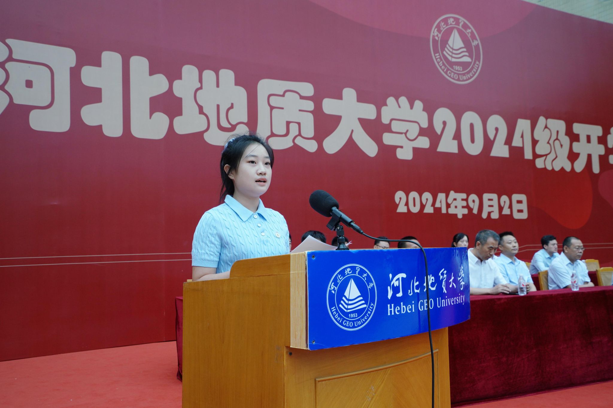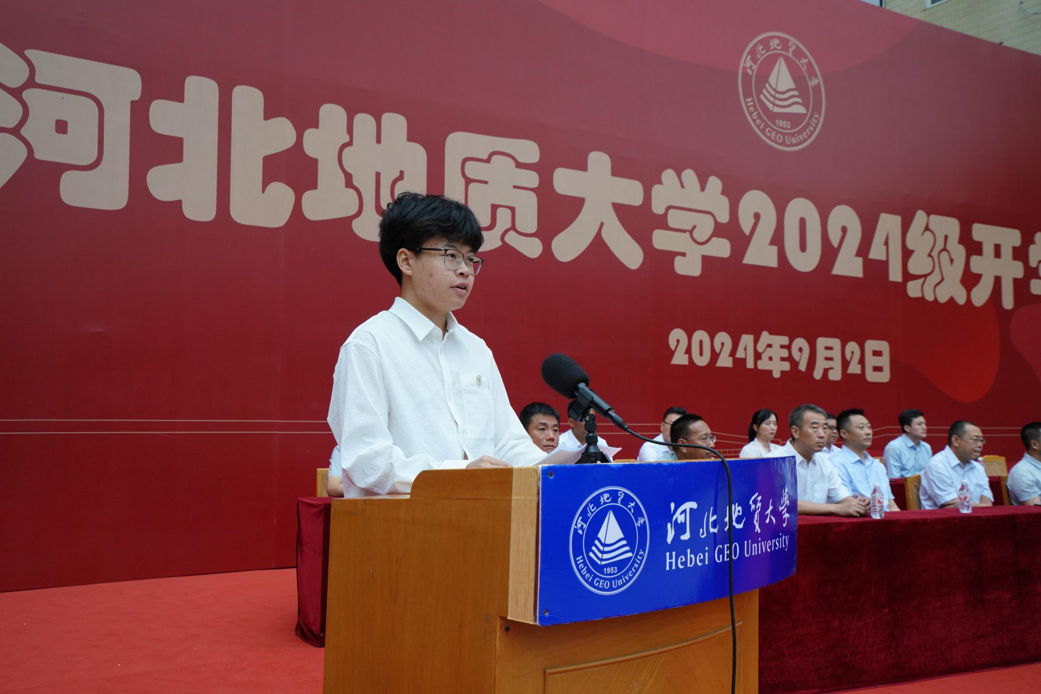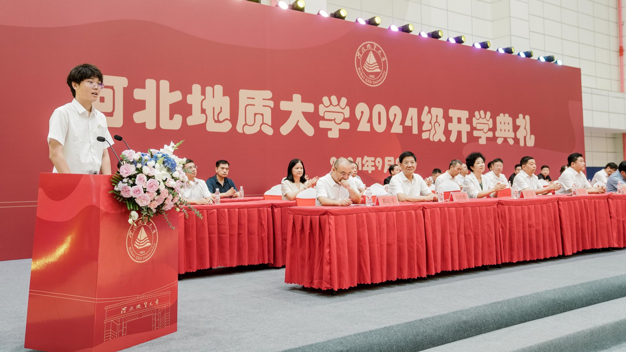 新生代表张彦祖、马文煜表示,要像前辈们一样,去探索无限的可能,写出属于“06后”的河北地大人的故事。青春是用来奋斗的,青春是用来绽放的。应秉承“达观博物”的校训精神,以热情高昂的精神面貌、扎实稳重的学习态度、乐观向上的生活心态,抓住机遇、迎接挑战,追求卓越、超越自我。