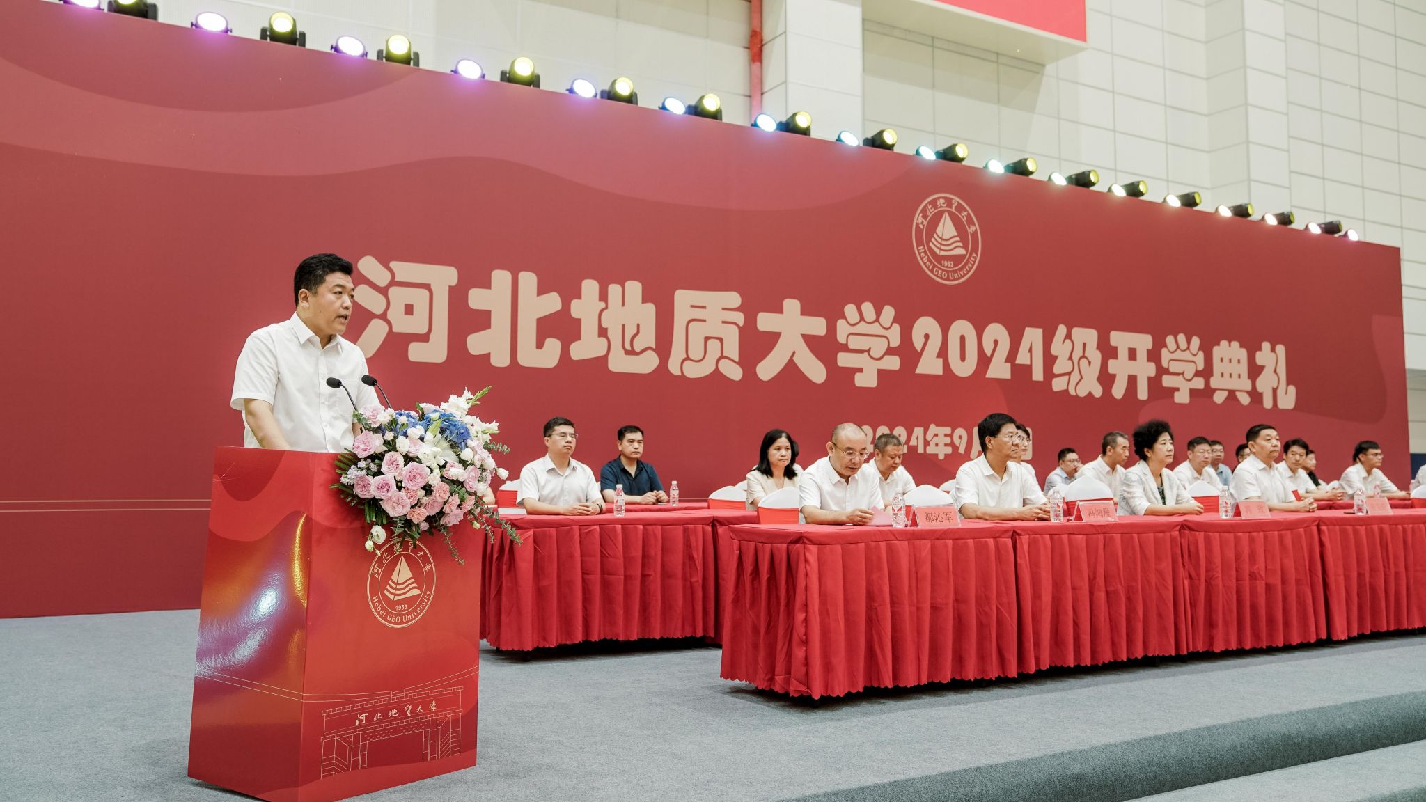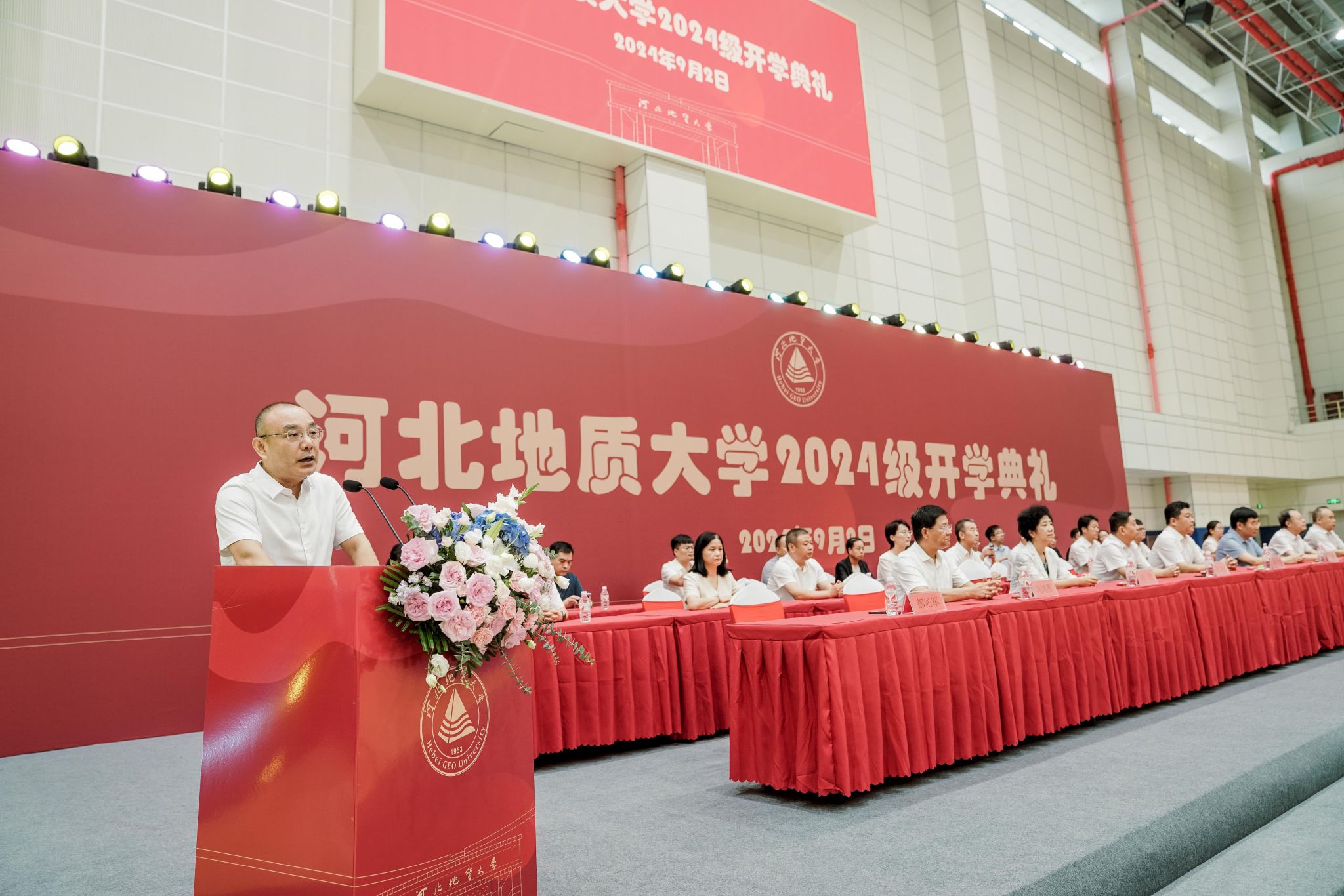 和志强代表全校师生向2024级新生表示热烈欢迎和衷心祝贺,祝愿同学们在地大的日子里健康平安、学有所成,怀瑾握瑜、风禾尽起!