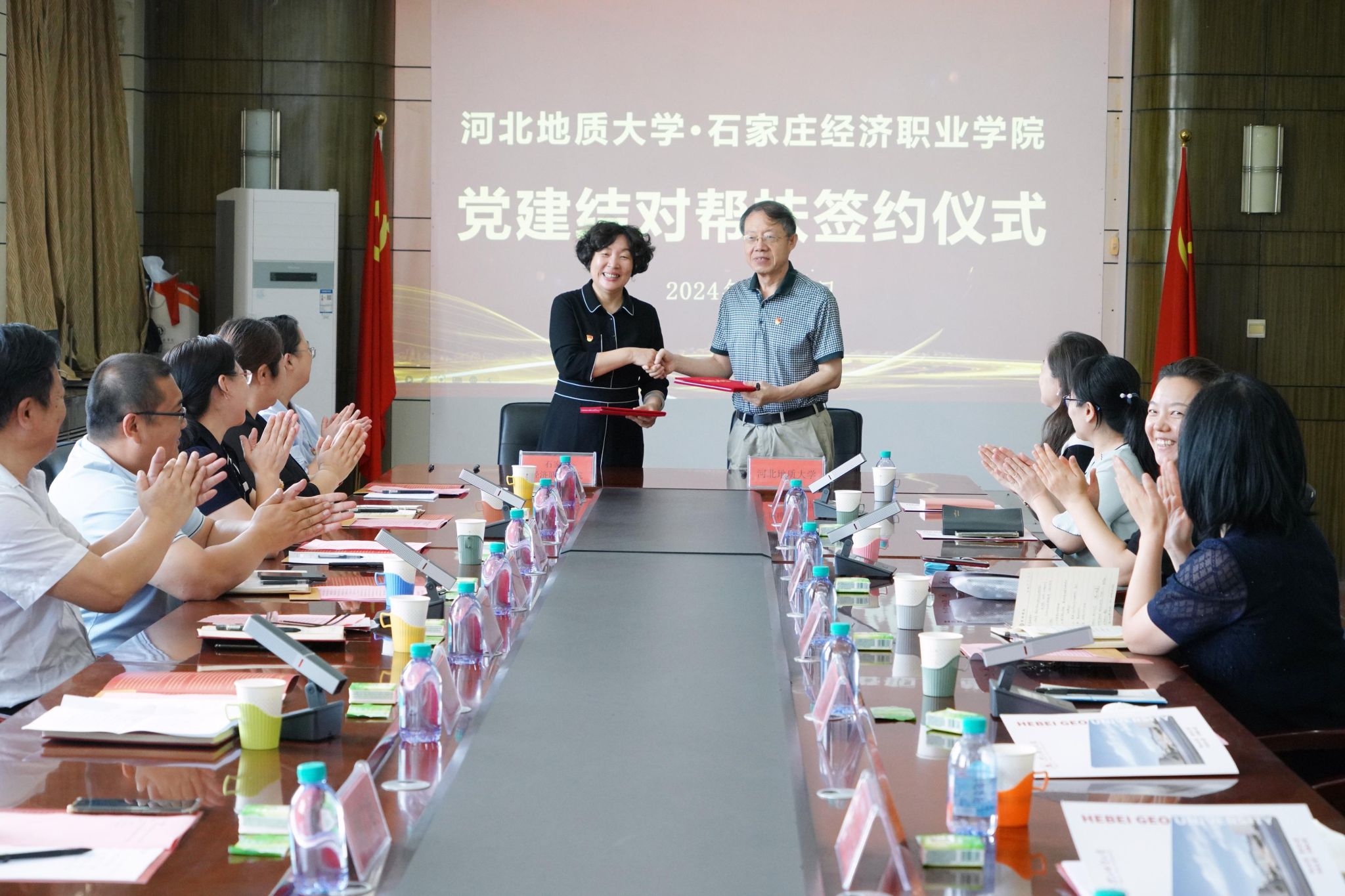6月27日上午,best365与石家庄经济职业学院在4楼会议室共同签署了党建结对帮扶协议。校党委副书记侯书文、石家庄经济职业学院党委书记贾喜环,双方党委组织部、结对的基层党组织负责人参与签约仪式。校党委组织部副部长冯天明主持会议。
