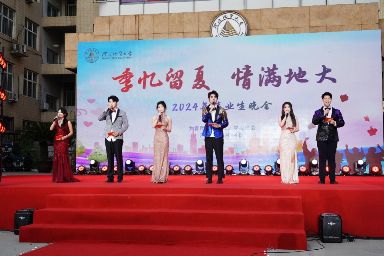 舞蹈结束后,伴随着悠扬的音乐,六位主持人走向舞台中央宣布“季忆留夏,情满地大”2024毕业生晚会正式开始!歌曲《有形的翅膀》让大家在优美的歌声中回忆大学的美好;相声《跑题》用风趣的语言艺术回忆毕业季点点滴滴的趣事;舞者们用婀娜的舞步、轻快的节奏演绎了拉丁舞《记忆留夏》,表达了学子对母校真挚的热爱和对四年大学时光深深的眷恋;朗诵《青春的记忆》带领观众和毕业生们深情回顾了在河北地大生活的美好时刻;歌曲《你曾是少年》、《我的未来式》等动听的歌声为我们带来了一场听觉盛宴;由毕业生表演的歌舞《匆匆那年》,将毕业生对母校的深情和对大学美好生活的不舍表现得淋漓尽致;歌曲《大鱼》、《年轻的战场》和走秀表演《与未来相约》表达了对即将离开母校、奔赴下一场山海的2024届毕业生未来的美好期许和祝福。最后,晚会在毕业生带来的《像你这样的朋友》的歌声中圆满落下帷幕。