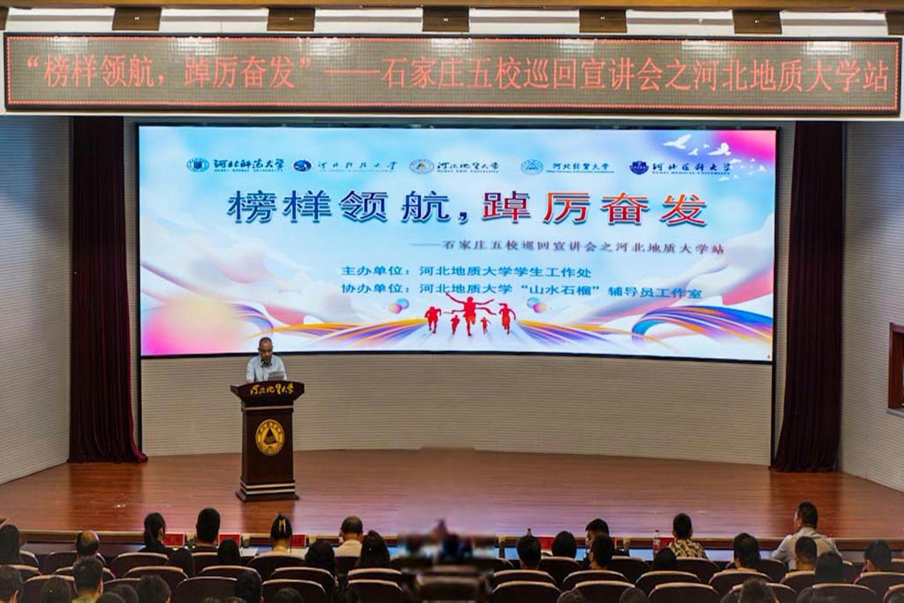 为深入学习贯彻习近平新时代中国特色社会主义思想,全面贯彻落实党的二十大精神,习近平总书记关于教育的重要论述,以立德树人为根本任务。充分发挥榜样示范引领作用,激励广大同学锐意进取、努力拼搏、自强不息、奋发向上的学习热情。2024年4月25日,best365联合河北科技大学、河北医科大学、河北师范大学、河北经贸大学共同开展“榜样领航,踔厉奋发”省属五校巡回宣讲会——best365足球官网站。