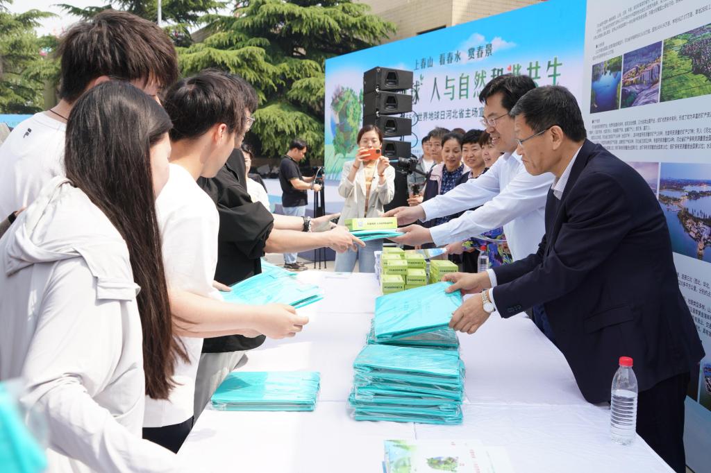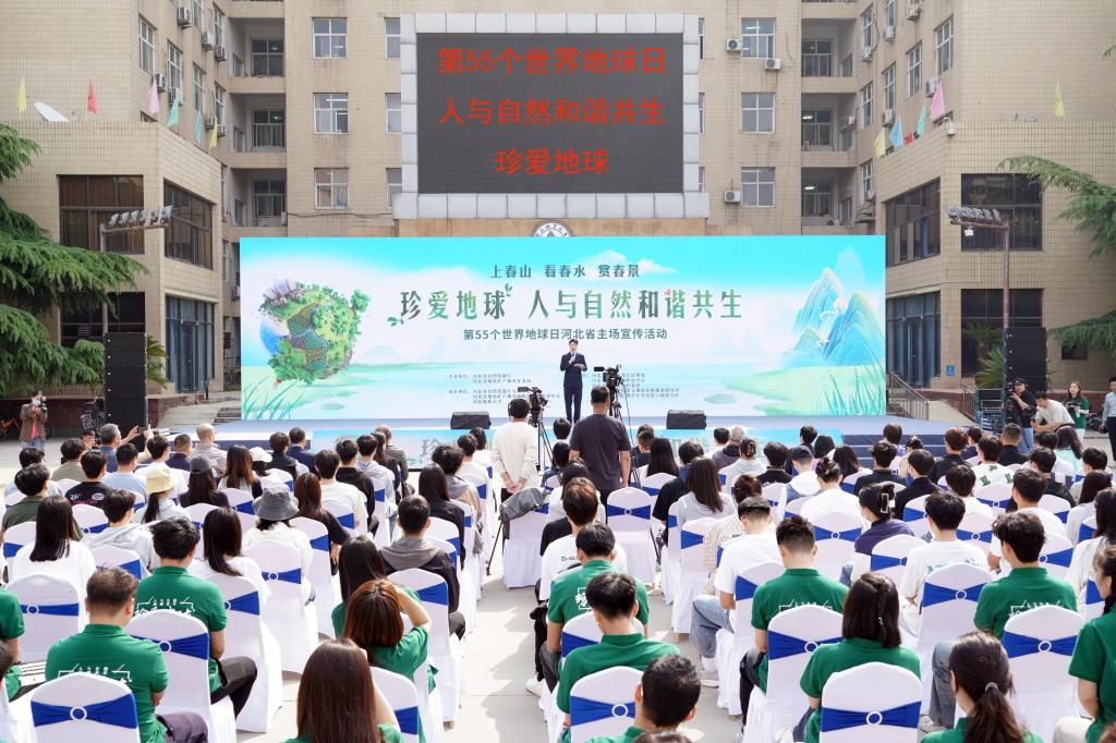 主题宣传活动在歌曲《上春山》中拉开帷幕,与会嘉宾共同浇灌象征绿色和希望的树苗,正式启动河北省第55个世界地球日宣传周宣传活动。