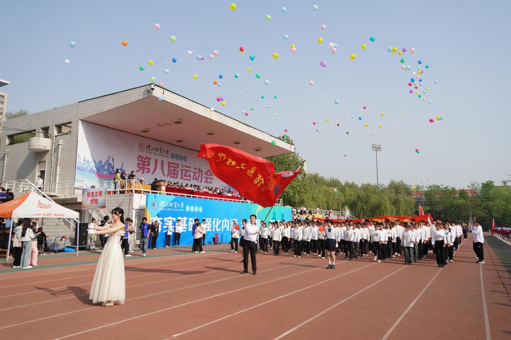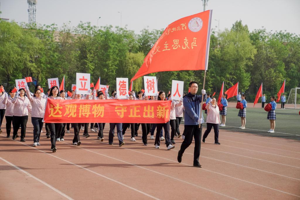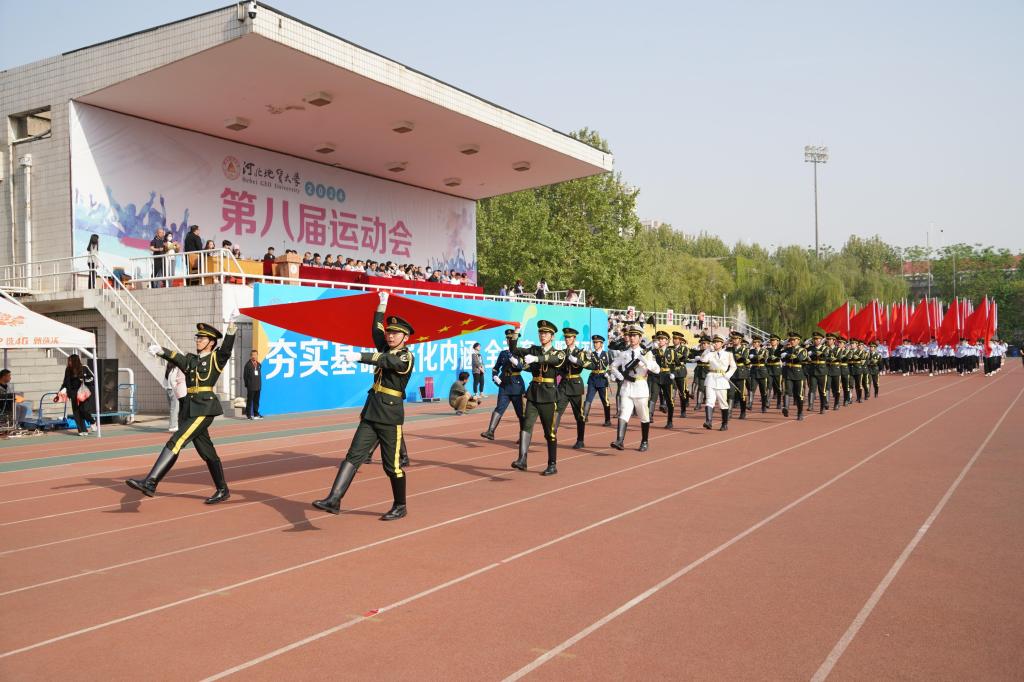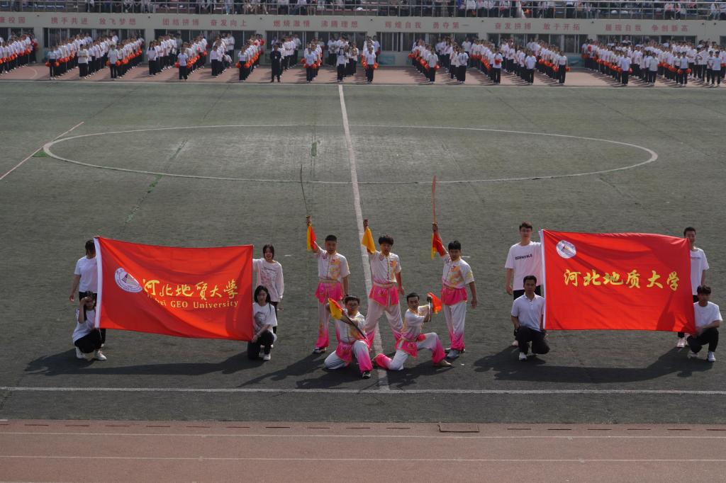 冯鸿雁致开幕词,他表示,体育作为德智体美劳“五育并举”的重要内容,承载着教育强国、体育兴国的梦想。学校一直延续着良好的体育传统,70余年的办学历程融汇了“发展体育运动、增强人民体质”的办学实践,运动氛围日趋浓厚,竞技水平明显提高。学校足球队在河北省大学生校园足球联赛中荣获女子组冠军、男子超级组季军,其中女足代表河北省进军全国决赛。攀岩队在第十九届全国大学生攀岩锦标赛中荣获甲A男子组速度赛冠军,乙组女子速度赛冠军,乙组速度接力赛季军。武术队参加河北省大中学生武术比赛,获得了2金6银1铜及女子团体第四名、男子团体第五名的好成绩。希望全体师生员工以此为契机,以健康的体魄、阳光的心态、向上的精神,抢抓机遇、团结拼搏,为实现学校事业高质量发展作出更大的贡献。