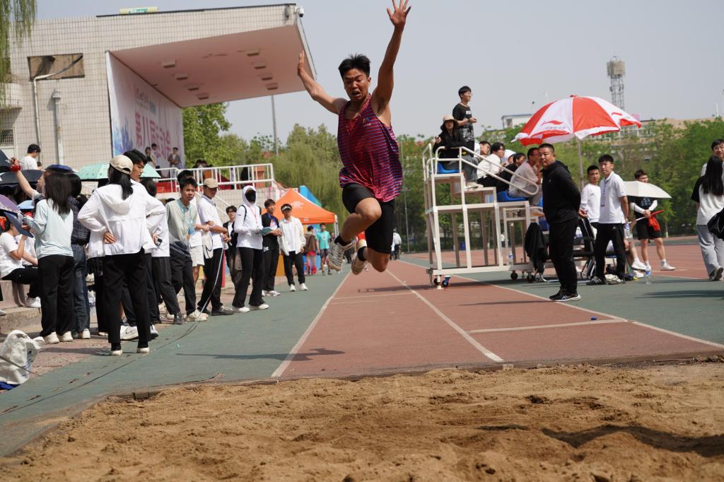 随后,运动员代表休闲体育专业刘凯浩同学、裁判员代表体育教学部牛建宇老师分别宣誓。在精彩的养生功法与武术表演和啦啦操表演结束后,运动会正式开始。在为期两天的比赛中,来自全校各个学院和单位的2694名运动员参加了包括趣味项目在内的18个比赛项目的角逐。