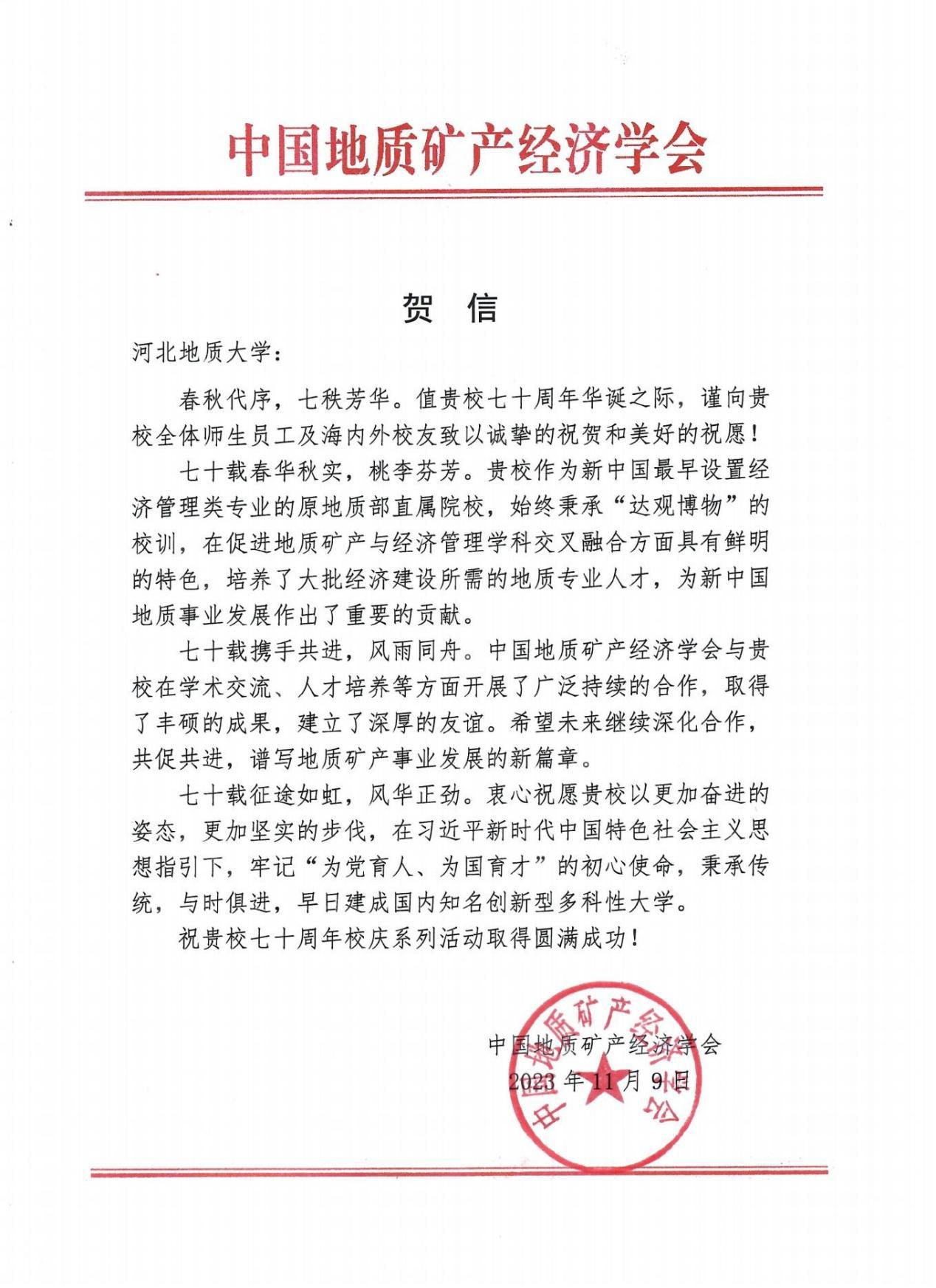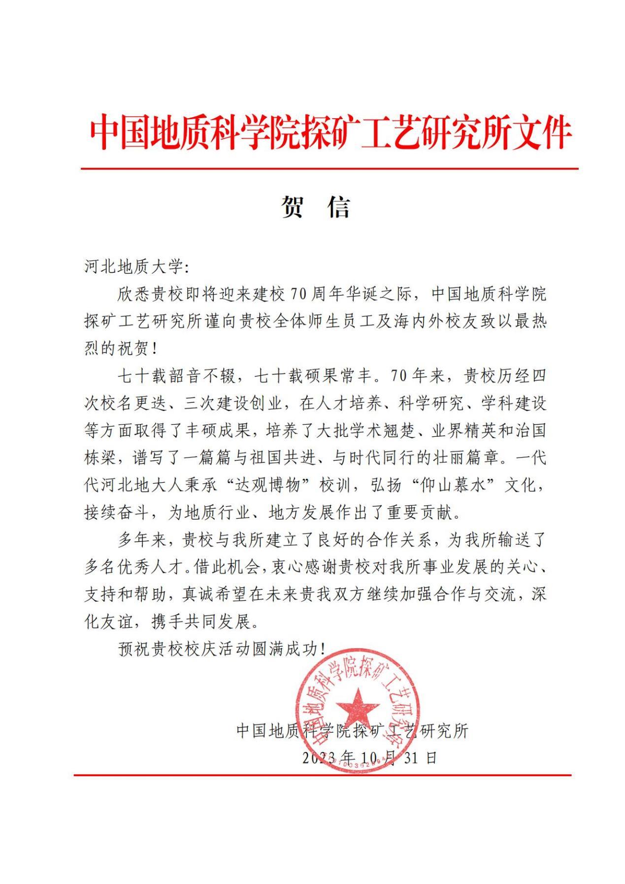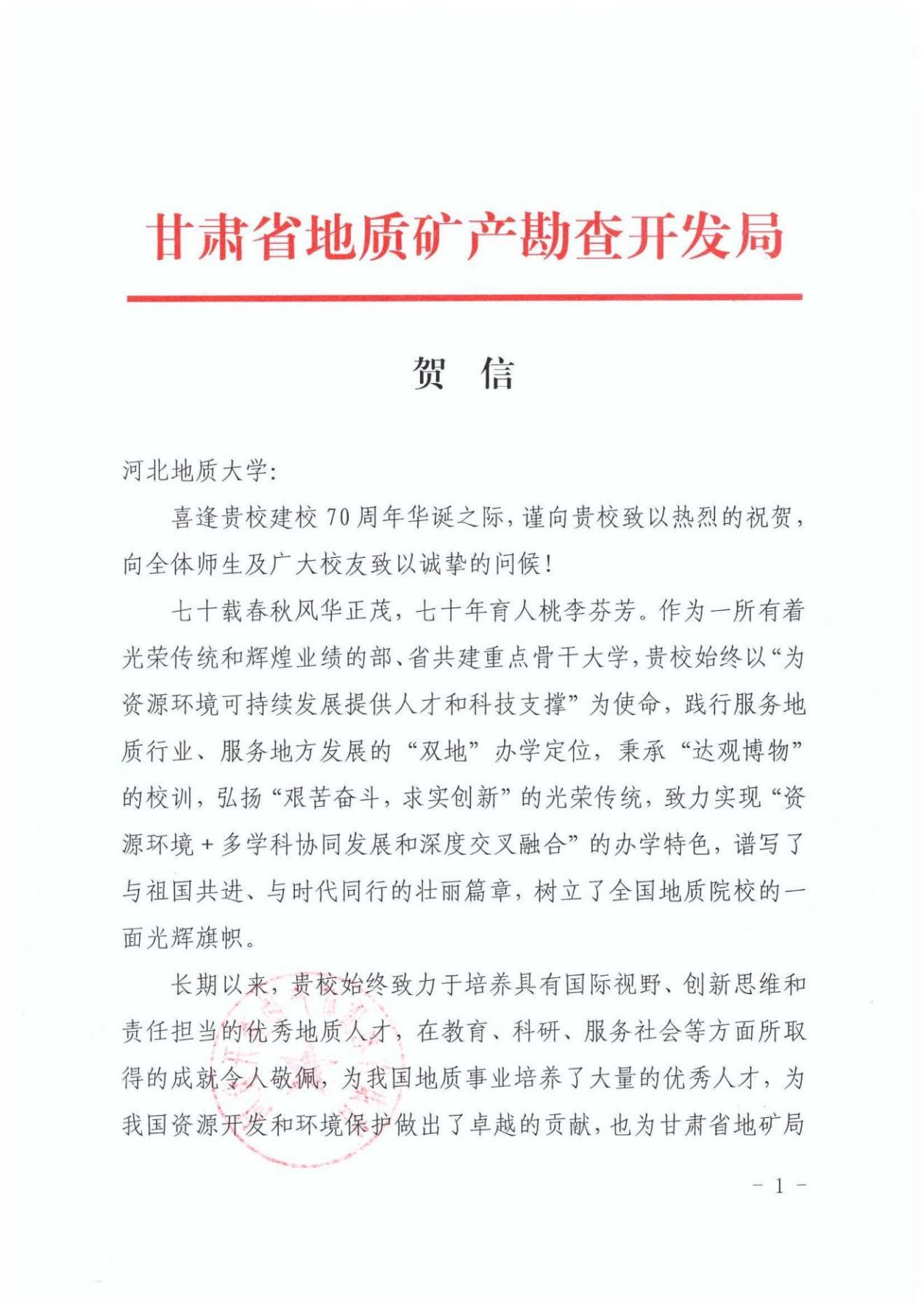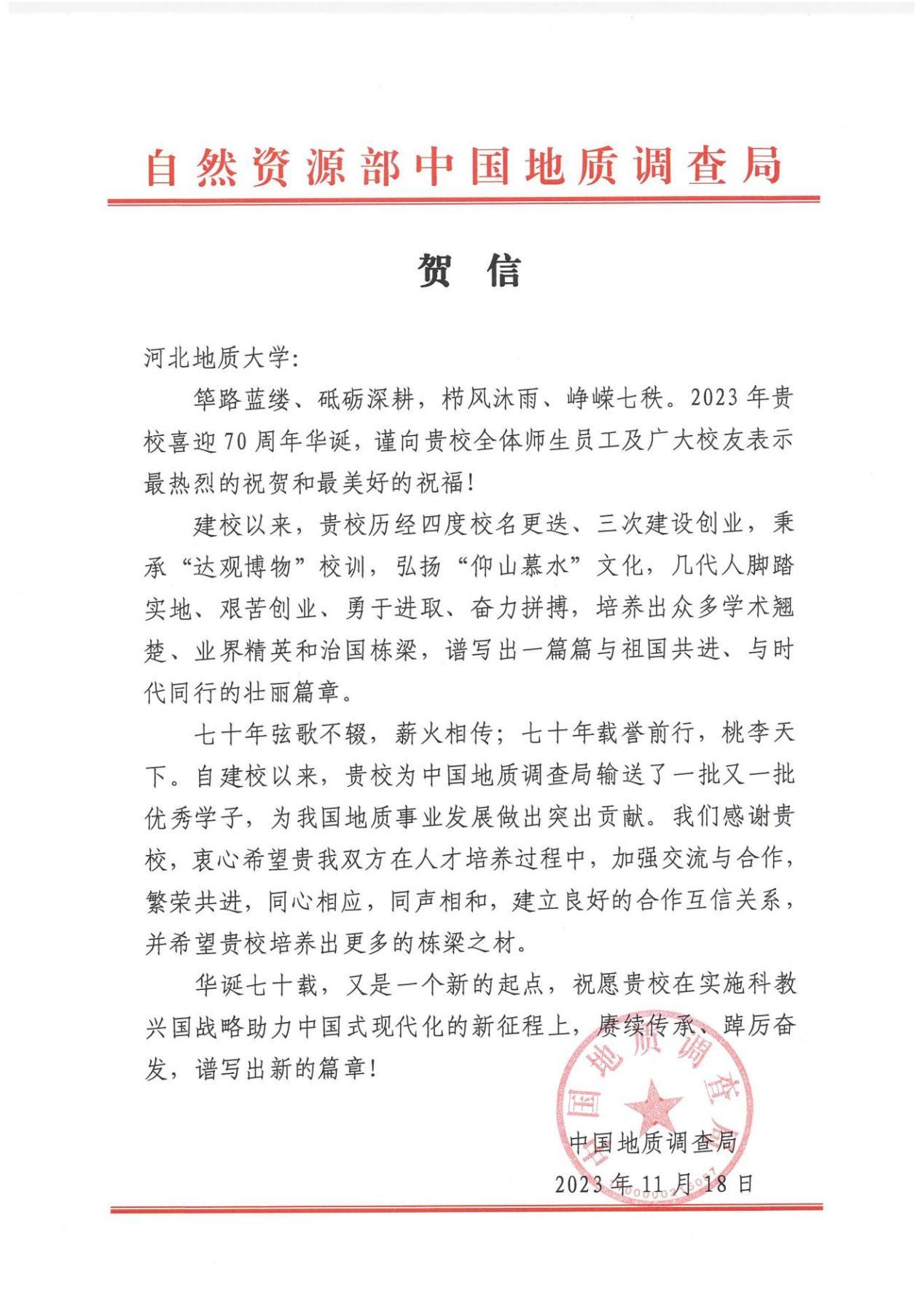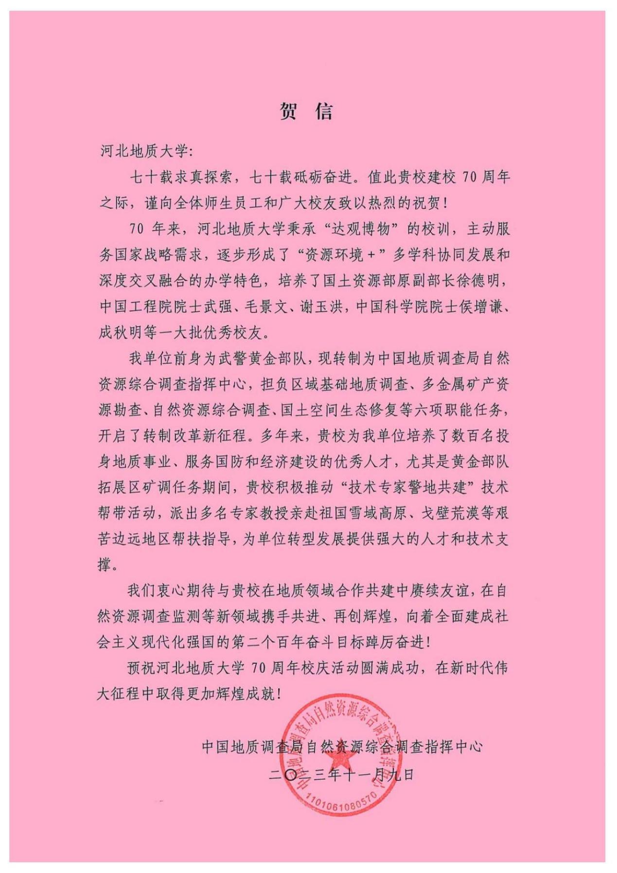 中国人民政治协商会议第八届全国委员会秘书长,原地质矿产部部长朱训贺词