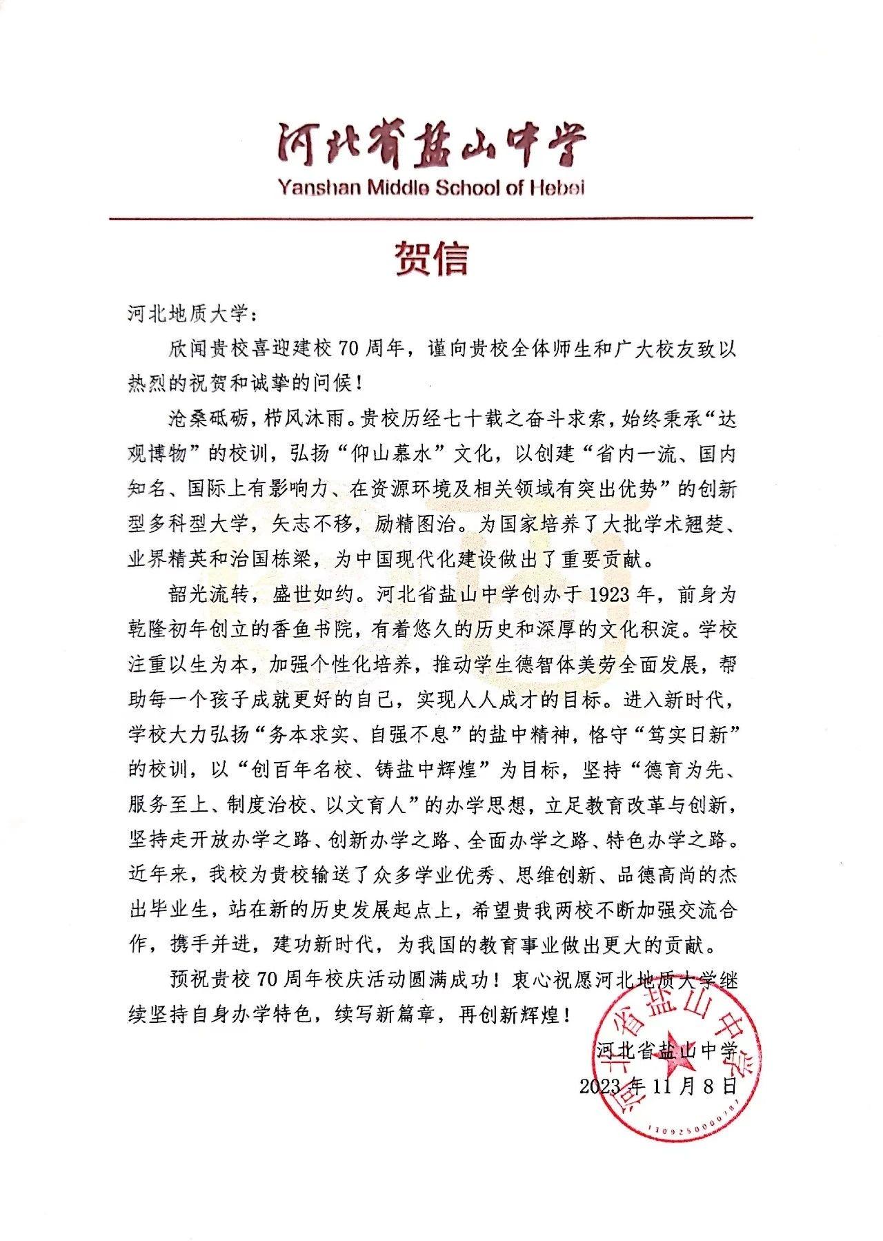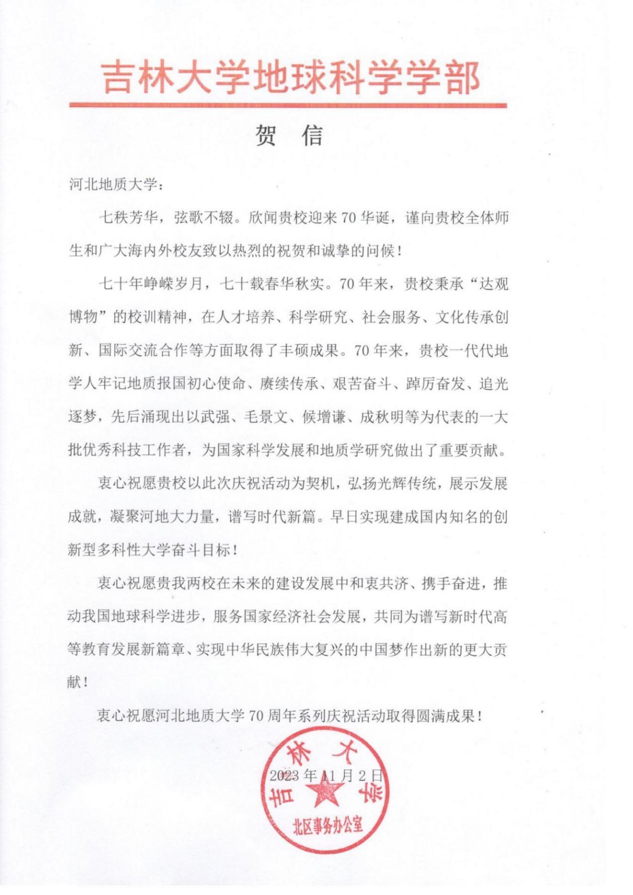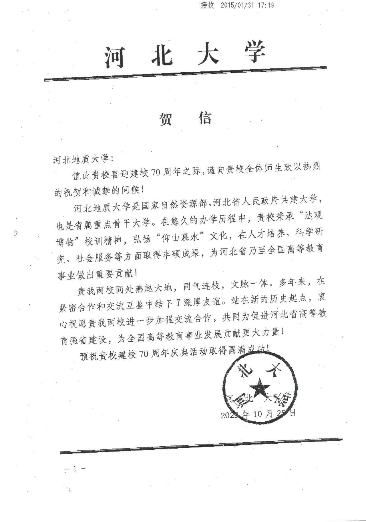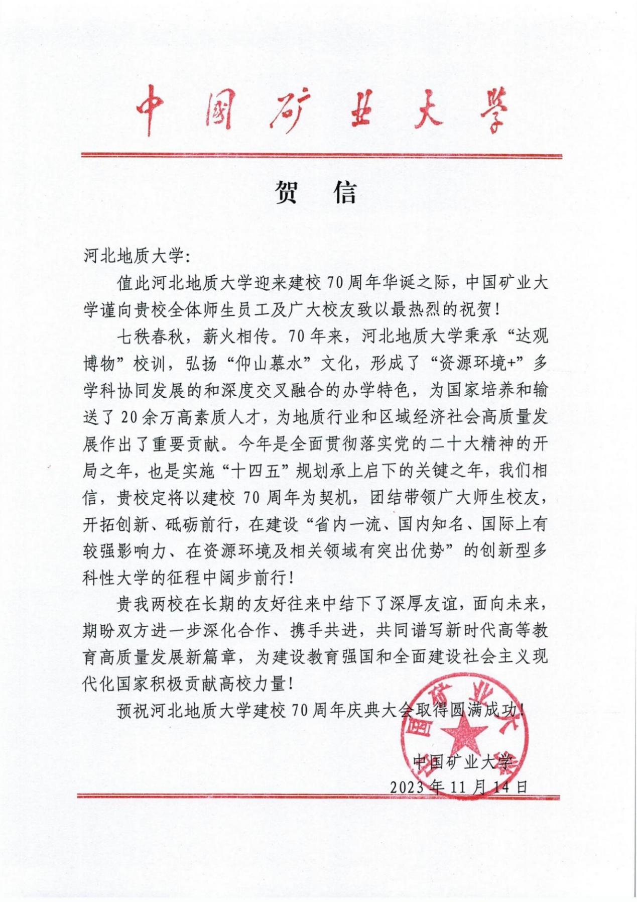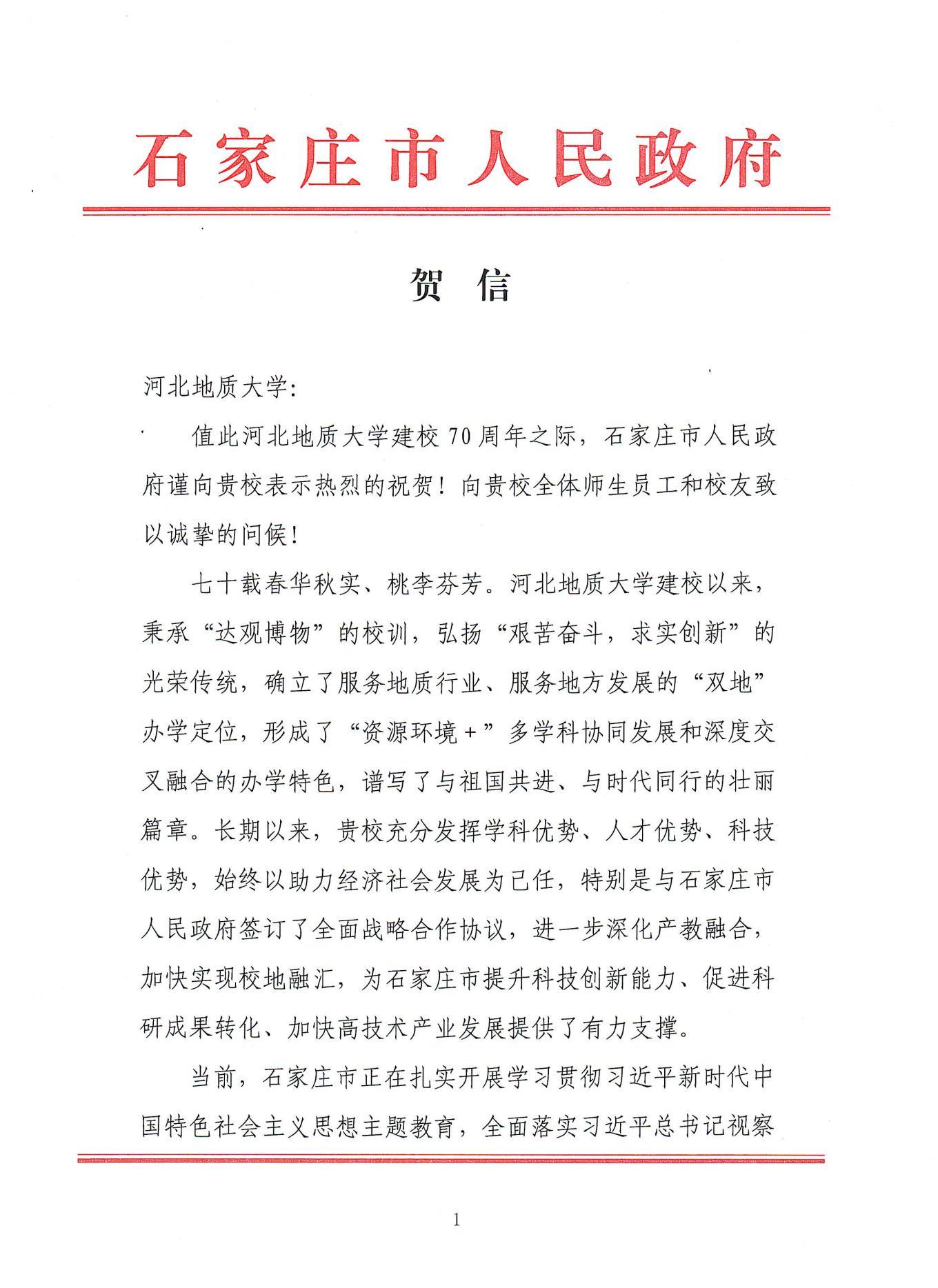 中国人民政治协商会议第八届全国委员会秘书长,原地质矿产部部长朱训贺词