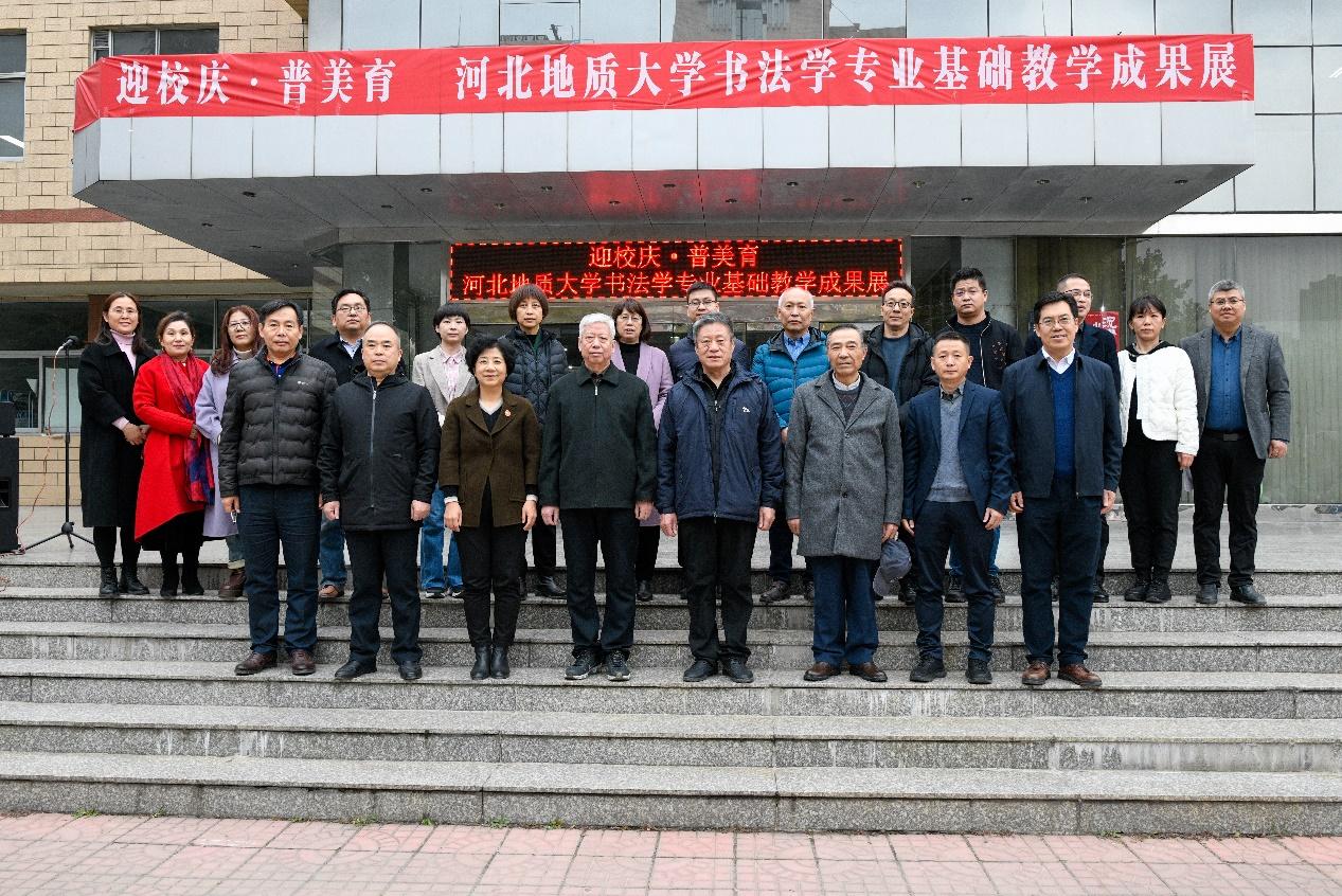 河北省教育厅原副厅长、巡视员张益禄;中国书法家协会理事、河北省书法家协会副主席、省政府文史馆员、省人大原正厅级副秘书长郭永利;best365足球官网党委常委、副校长冯玫;党委常委、纪委书记李同义;党委常委、副校长王滨;副校长赵永强;best365足球官网终身特聘教授季强;李可染画院研究员、石家庄市美协副秘书长尹一峰;中国书协会员,省书协草书委员会委员霍威;图书馆馆长张翠军,副馆长王攀;土地科学与空间规划学院院长尚国琲;就业中心主任李占乔;教务处副处长杜江民;教务处副处长陈娜;艺术学院书记宋朝霞;院长齐勇;副院长李涛;副院长赵志策;副书记李蕊;书法教研室主任苏道玉;优秀校友北京铭艺总经理赵学忠等。