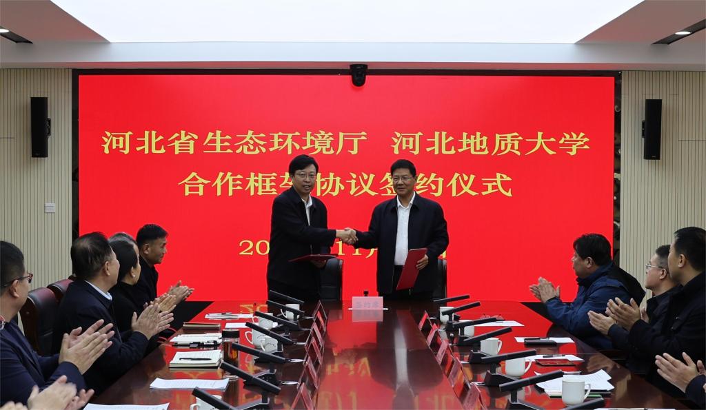 为深入践行习近平生态文明思想,适应新时代河北省生态环境保护工作新形势、新要求,11月13日,河北省生态环境厅与best365足球官网签署合作框架协议。签约仪式由省生态环境厅二级巡视员王晓晨主持,best365足球官网副校长王滨介绍双方合作意向,省生态环境厅副厅长吴跃、best365足球官网副校长冯鸿雁代表双方签约并讲话。
