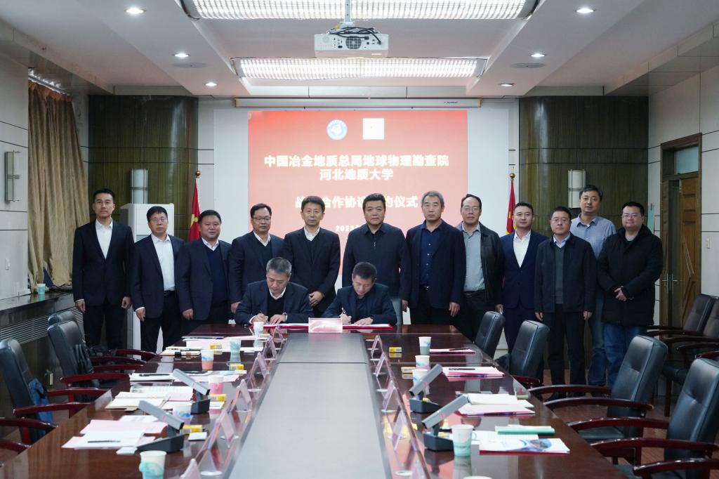 签约仪式开始前,双方举办交流座谈会。和志强在致辞时首先简要介绍了学校70年来的办学历史、办学理念和学科特色,指出学校始终以“为资源环境可持续发展提供人才和科技支撑”为核心使命,致力于建设成“省内一流、国内知名、国际上有较强影响力、在资源环境及相关领域有突出优势”的创新型多科性大学。中国冶金地质总局地球物理勘查院党委书记杨占东介绍了物勘院的基本情况和历史沿革,重点介绍了院坚决落实习近平总书记关于科技创新的重要论述,按照提高企业核心竞争力和增强核心功能部署,立足于“地空协同、深勘细查、精准找矿”的实际需要,深入开展独创的“构造叠加晕”技术研究,发展航空物探、重磁电震等传统优势技术,探索推动数据密集型现代化地质工作新模式。