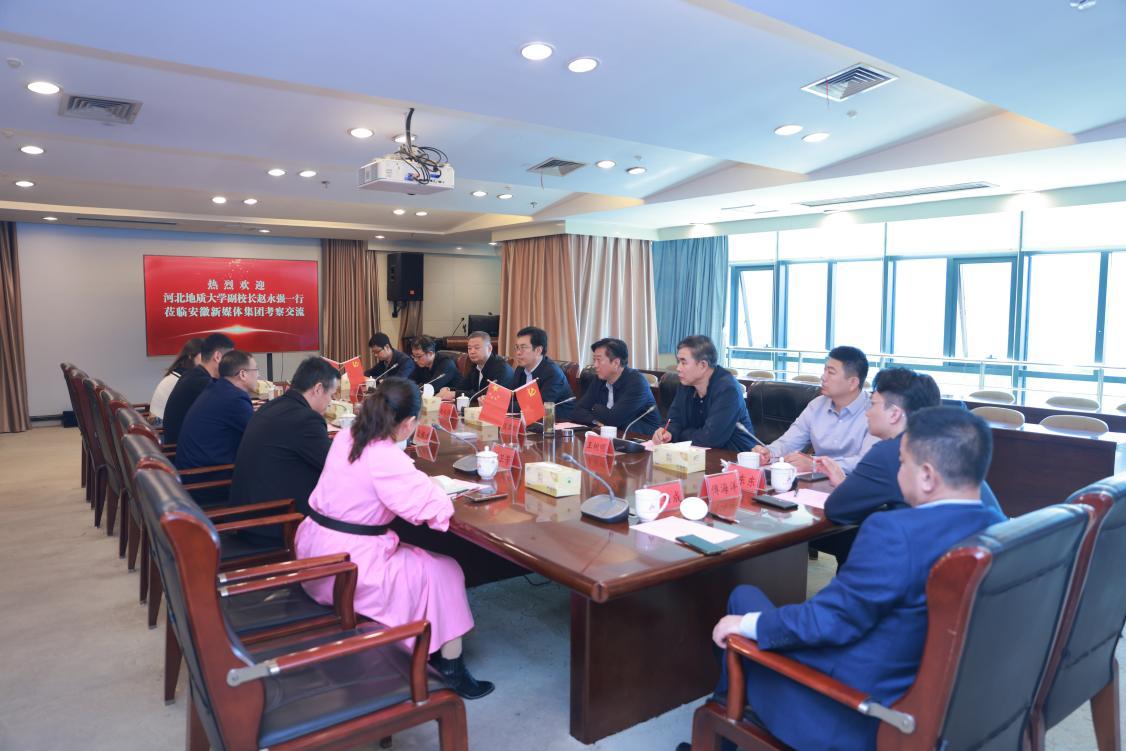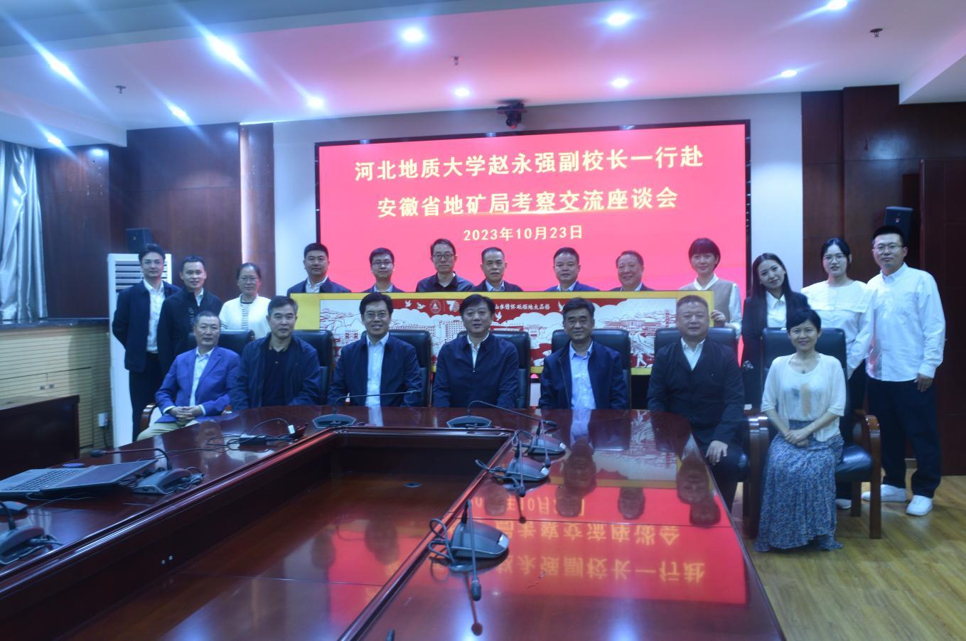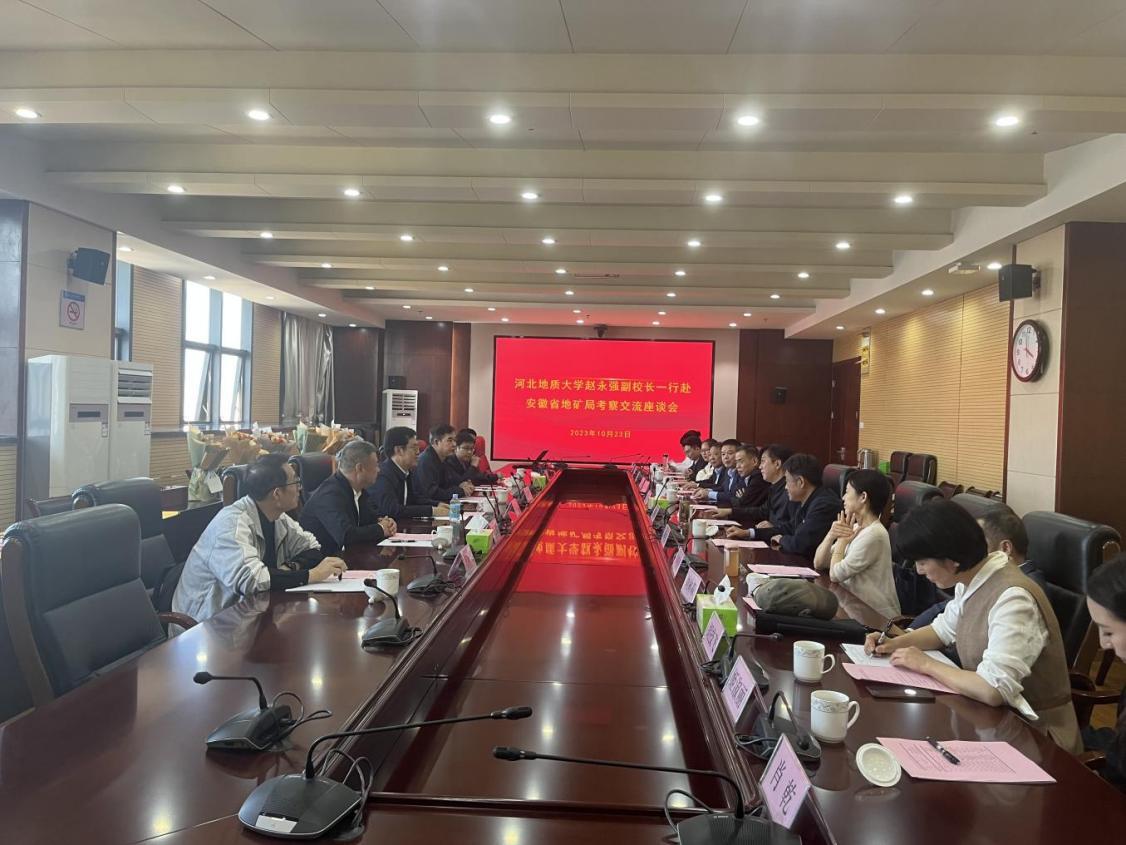 10月24日上午,赵永强一行赴安徽省地质矿产勘查局调研交流。安徽省地质矿产勘查局党委书记、局长朱学文详细介绍了安徽省地质矿产勘查局的发展历程、发展现况、科学研究成果和地质勘查、矿业开发对安徽省经济社会发展的重要作用,并高度评价了best365足球官网校友在安徽省地质矿产勘查局发展中做出的贡献,向best365足球官网多年来为安徽地矿事业输送大量专业人才表示感谢。赵永强向安徽省地质矿产勘查局表达了诚挚的感谢,分享了学校历经三次校名更迭、三次建设创业的发展历史和面向地质行业、面向地方发展的“双地”办学定位,介绍了学校近年来在新校区建设、人才培养、学科建设、科学研究和社会服务等方面的进展,详细介绍了古人类研究科学家季强研究员和国内知名找金矿专家宋明春教授带领的山海团队做出的成果。双方就产教深度融合、深化科技创新和平台建设、联合人才培养和人力资源开发、构建长效合作机制进行了深入交流。
