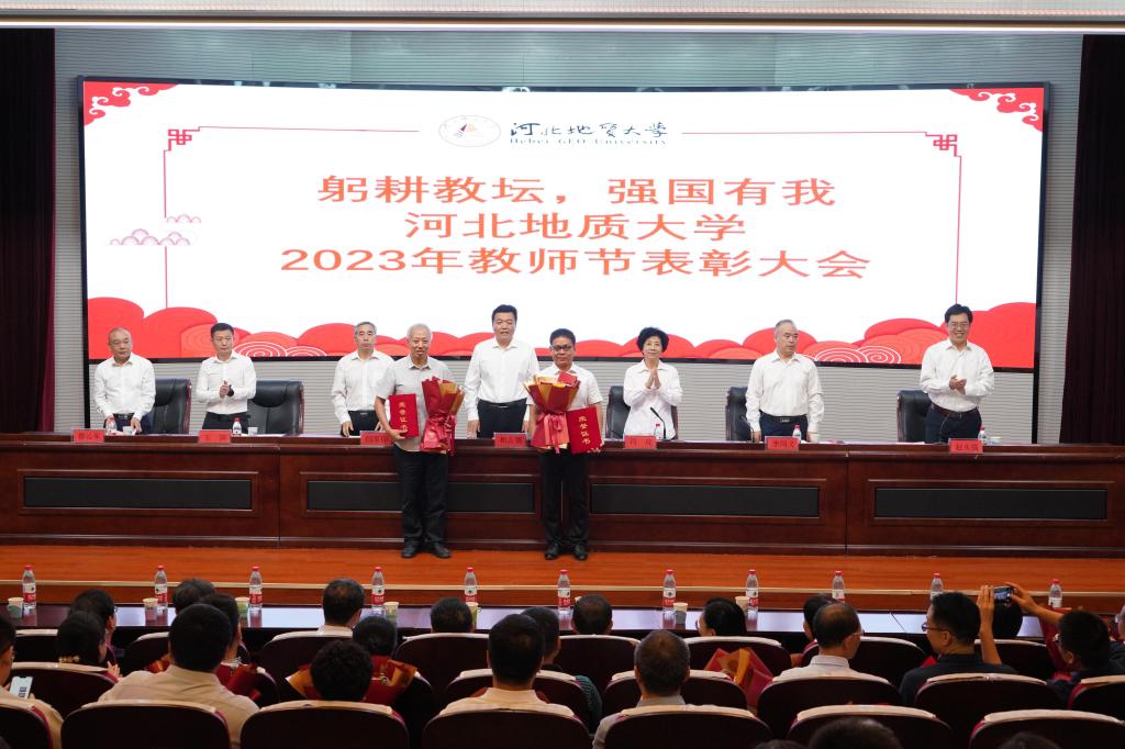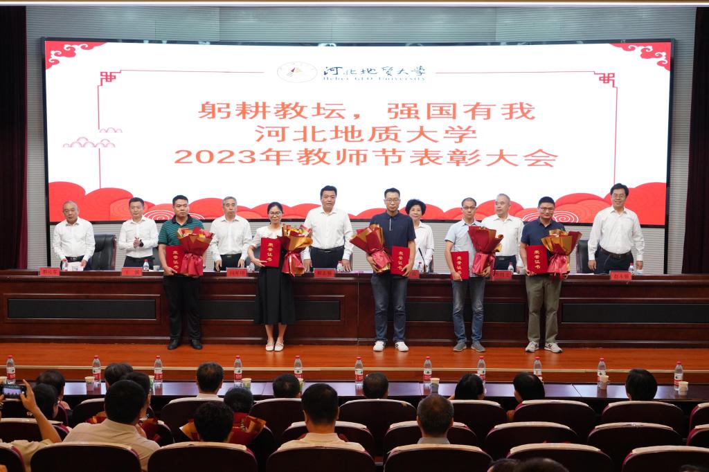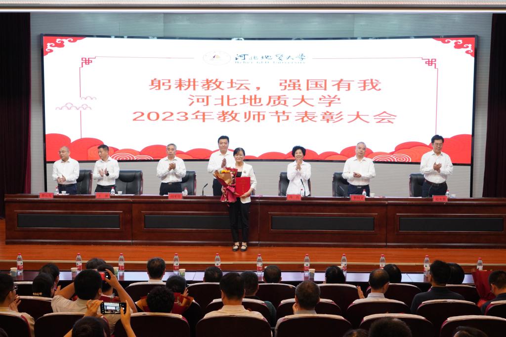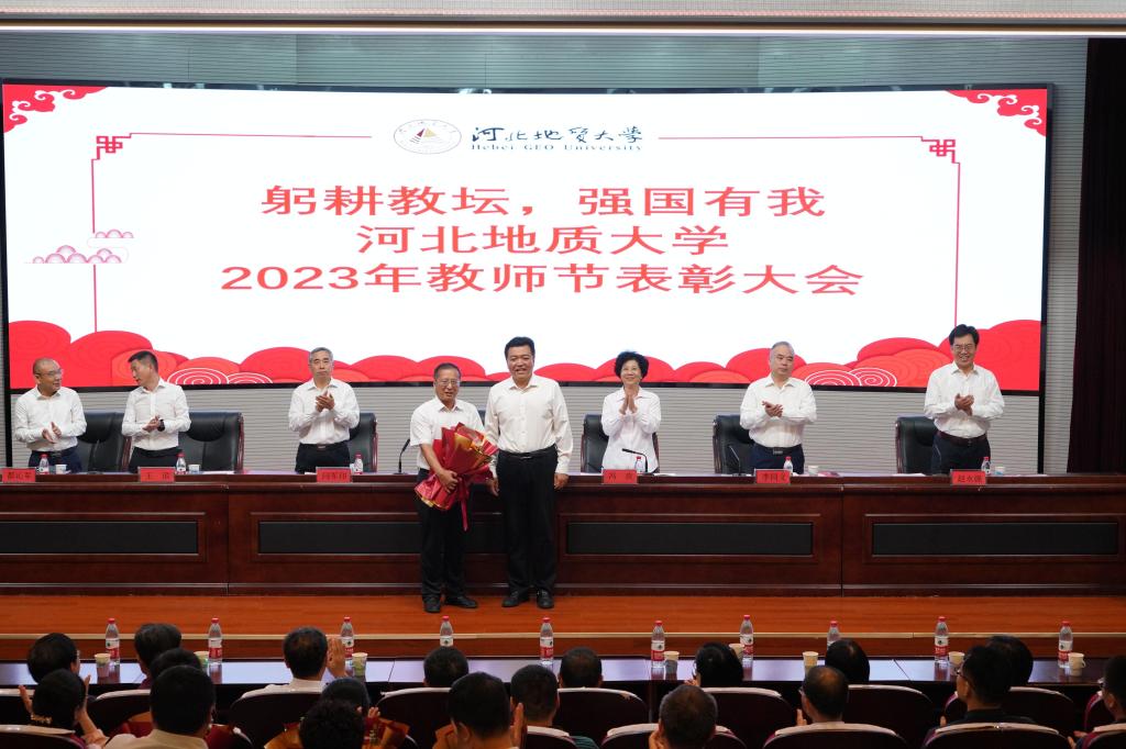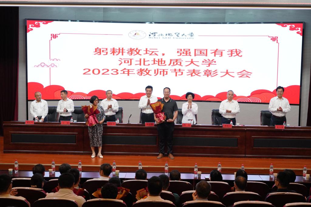 校长和志强为荣获“山海团队”称号的古生物团队首席科学家季强老师、黄金找矿团队首席科学家宋明春老师颁发奖杯,其他校领导分别为获奖教师和团队颁发了荣誉证书,新入职教师代表赠送了鲜花。
