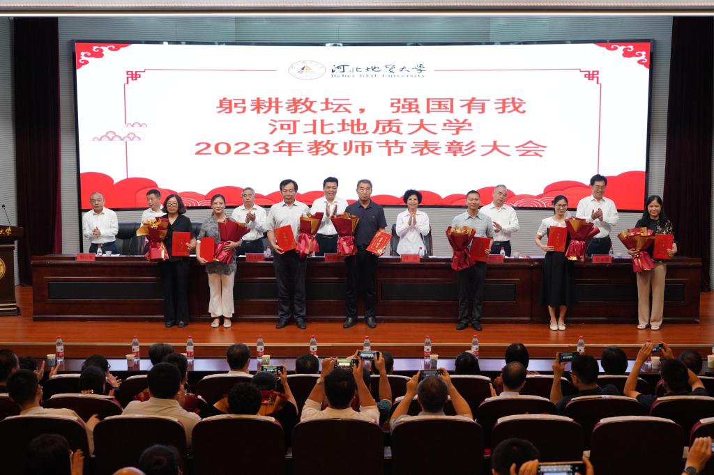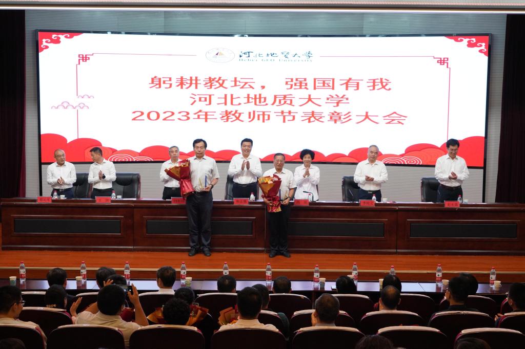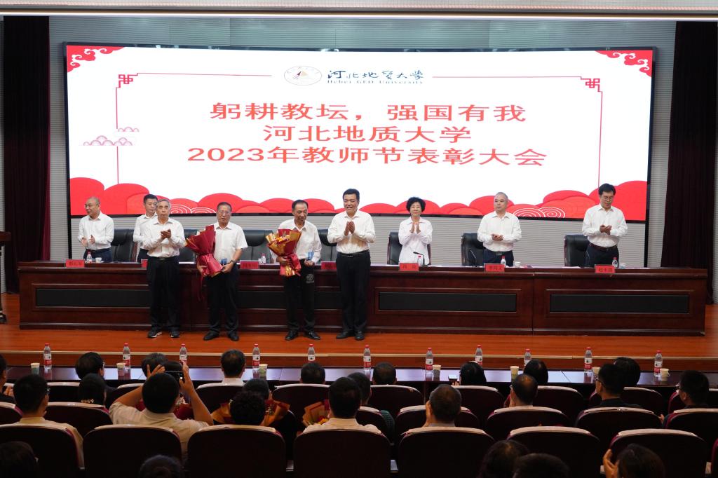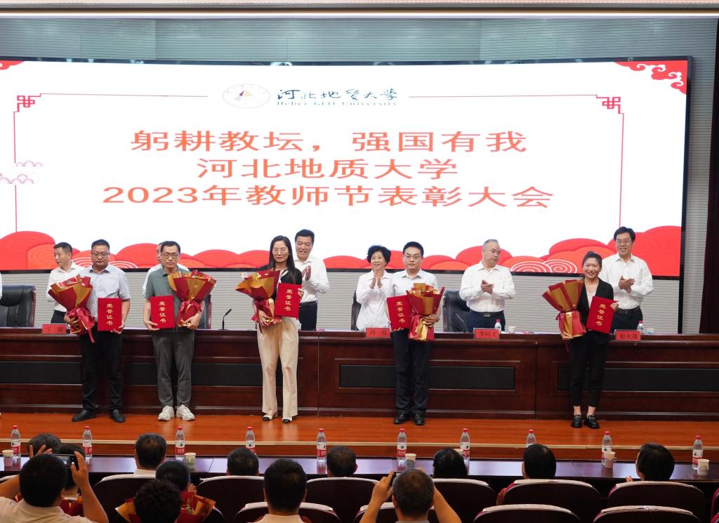 校长和志强为荣获“山海团队”称号的古生物团队首席科学家季强老师、黄金找矿团队首席科学家宋明春老师颁发奖杯,其他校领导分别为获奖教师和团队颁发了荣誉证书,新入职教师代表赠送了鲜花。