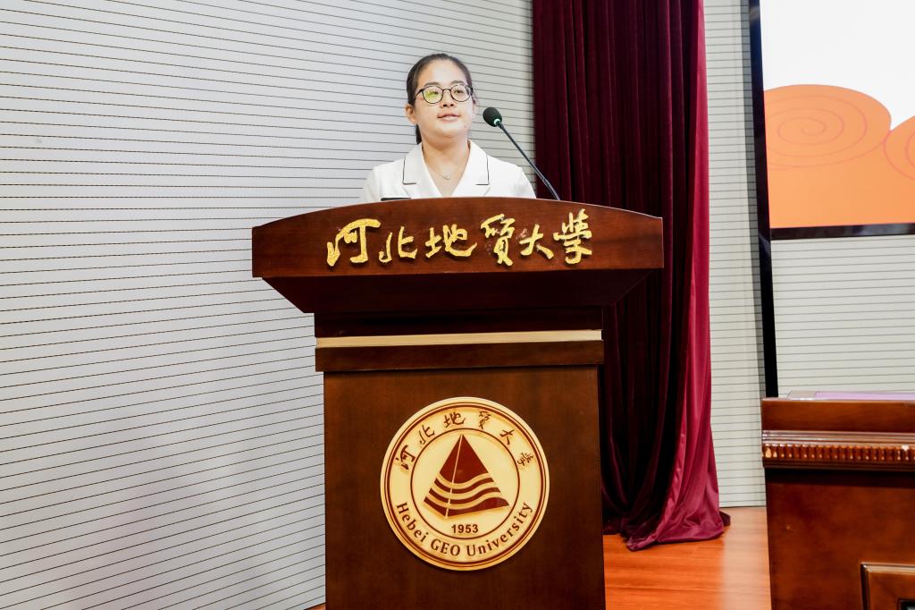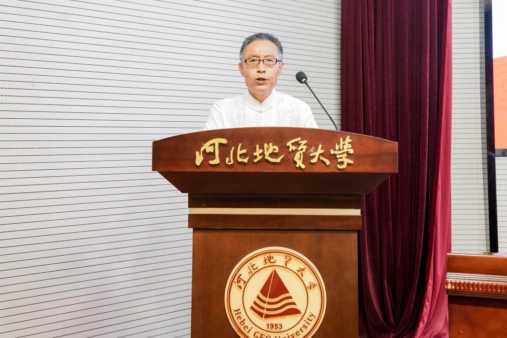 荣休教职工代表苗泽华老师发言,他表示,老教师们将依然关心学校,热爱学校,关爱师生,关注校友。我们作为河北地大人,要继续为学校的建设与发展贡献自己的才智与力量!