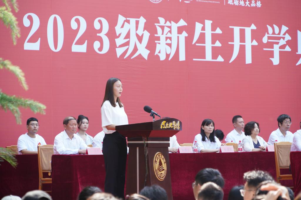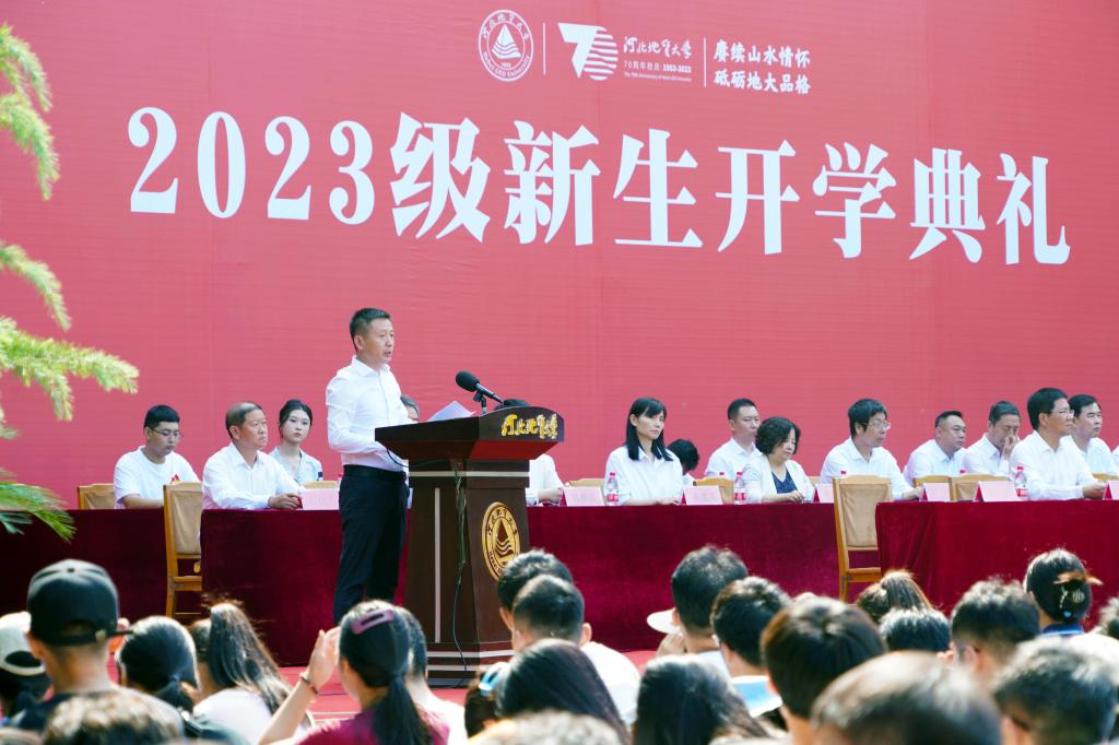 新的起点孕育新的希望,新的征程铸就新的辉煌。今天,2023级全体新生将怀抱理想,扬帆起航,开启人生的新篇章。希望你们牢记校长的嘱托、老师的祝福、学长的期盼;秉承“达观博物”之校训,传承“‘双地’办学”之理念,努力成为国家和社会有用的人才,在河北地大书写属于自己的精彩人生。