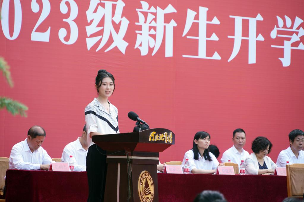 新生代表、管理学院张凯嘉同学在北校区开学典礼的发言中提到:“少年时光何等珍贵,定要谨记‘达观博物’的校训,弘扬‘艰苦奋斗,求实创新’的光荣传统,担当青年责任、笃行地质精神、培育爱国情怀,奋力在青春赛道上跑出我们当代青年的最好成绩。”