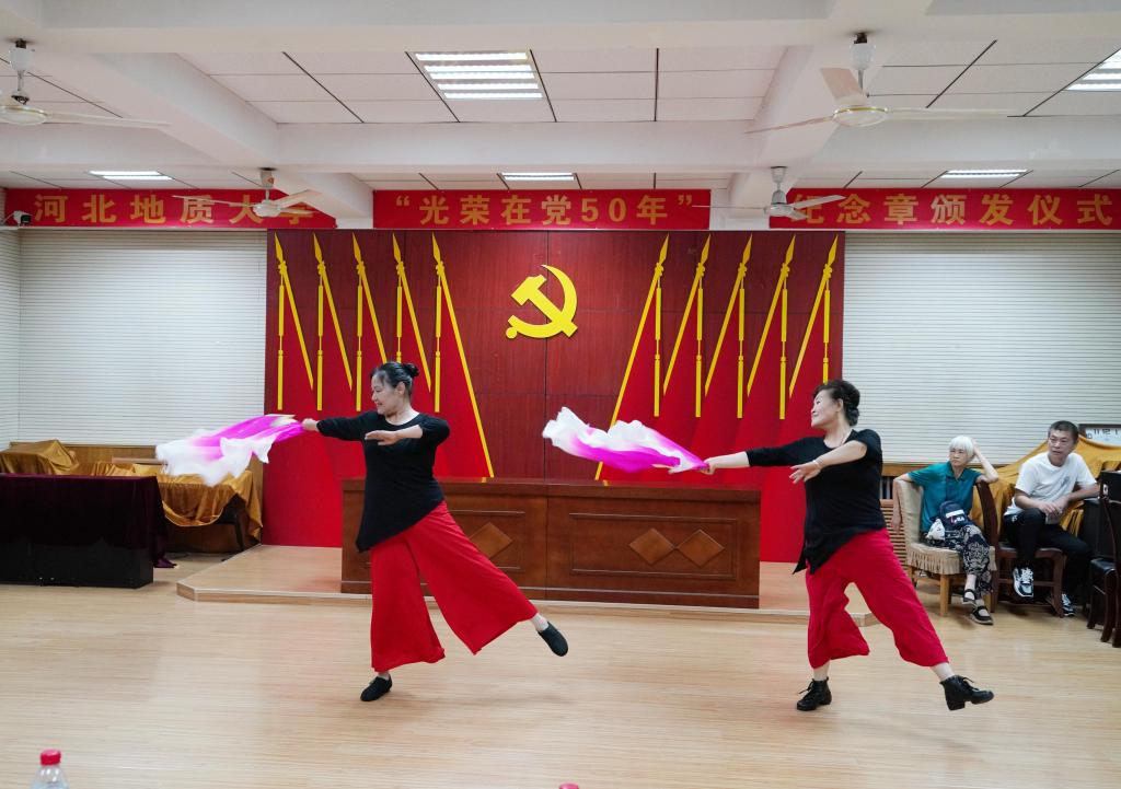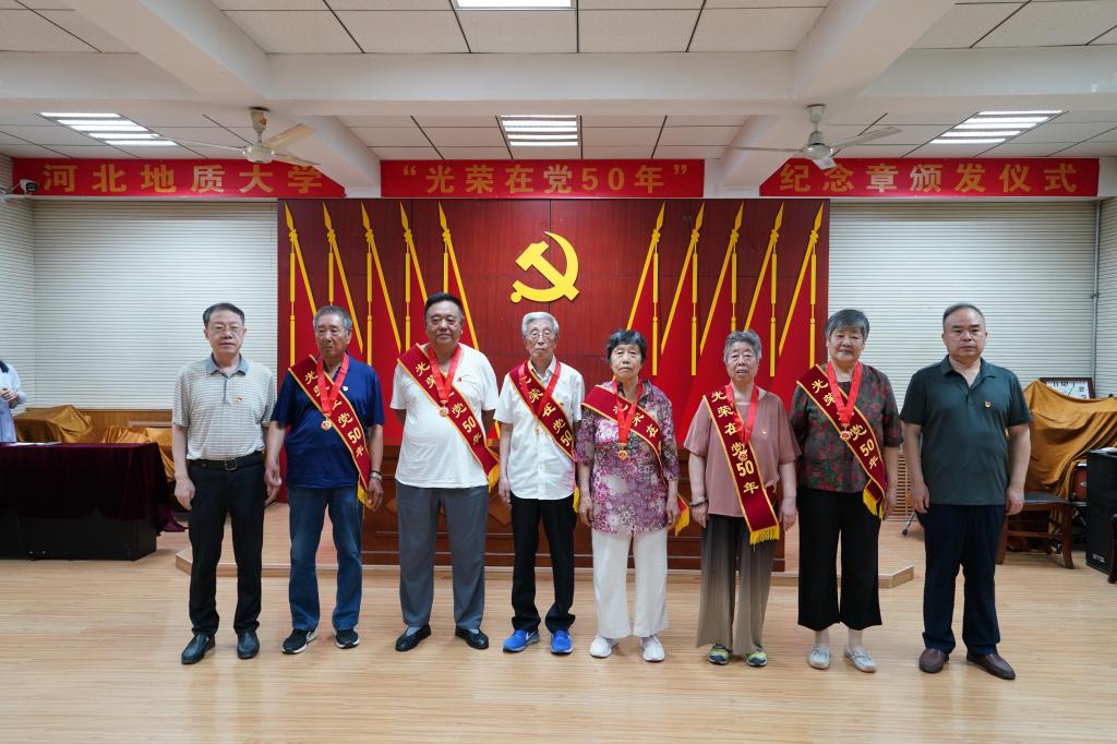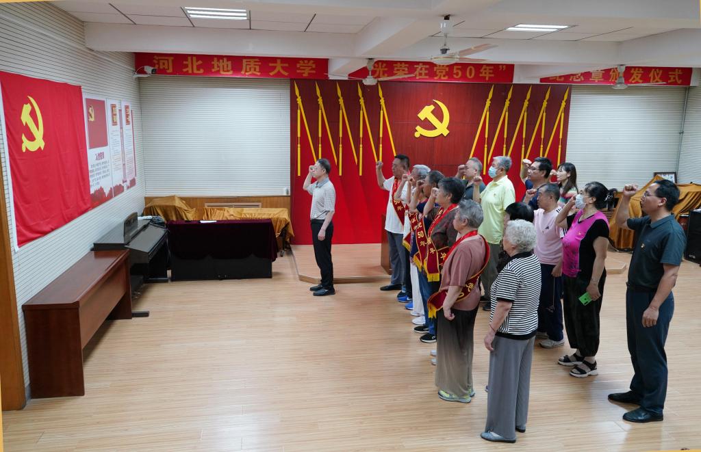 侯书文表示,在庆祝建党102周年的重要时刻,党中央向老党员颁发“光荣在党50年”纪念章,充分体现了以习近平同志为核心的党中央对老党员的尊重、关心和爱护,是对全体老党员的最高礼赞,也是全校党员的荣光。各位老党员、老同志在各自岗位上勤勤恳恳、默默奉献,坚定理想信念,忠诚党的教育事业,践行党的宗旨,用汗水和智慧助力学校70年发展改革稳定,树立了先进典型、凝聚了榜样的力量。希望老党员、老同志珍视这份荣誉,始终牢记党员身份,不忘入党初心,牢记铮铮誓言,弘扬优良传统、赓续红色血脉,讲好党的故事、地大故事,继续关心和守护学校年轻一代师生健康成长,继续一如既往为学校发展建言献策,为学校教育事业发展贡献力量。