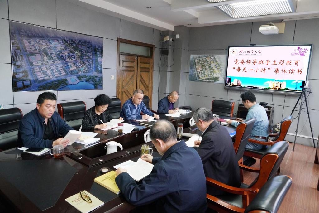 为扎实开展好best365学习贯彻习近平新时代中国特色社会主义思想主题教育读书班,5月4日下午,校党委领导班子在主楼三楼会议室举办主题教育读书班“每天一小时”集体读书会,带头开展理论学习,扎实有效推动主题教育走深走实。校党委副书记侯书文主持读书会,校长和志强带头领读,党委领导班子成员出席,副校长赵永强列席会议。
