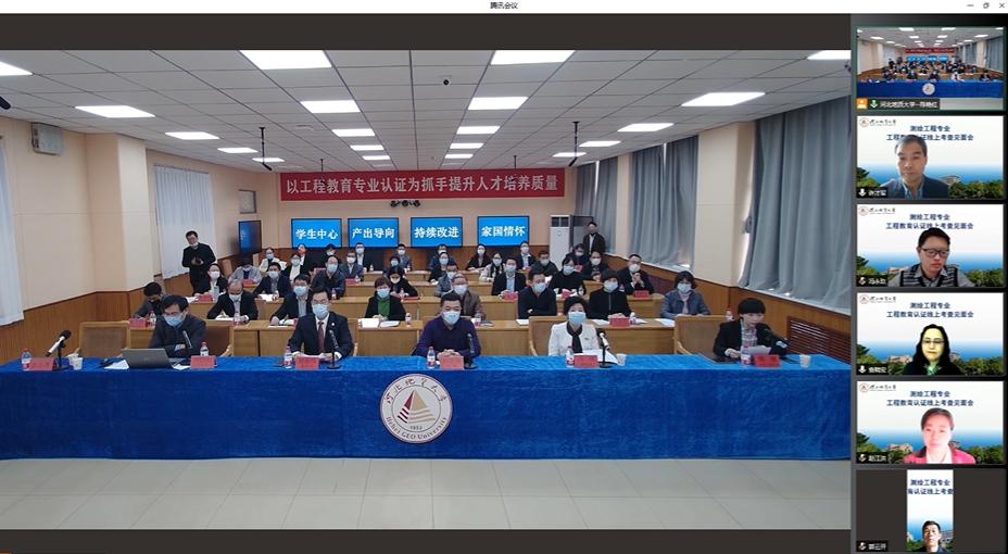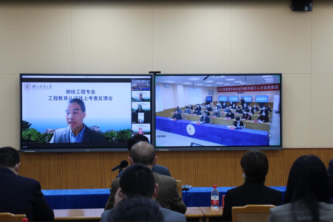 许才军教授对本次专业认证现场(线上)考查的目的、意义及相关安排进行说明。随后,土地学院院长尚国琲就学院和专业情况、学生情况、培养目标、毕业要求、持续改进、课程体系和师资队伍等7个方面作认证汇报。汇报结束后,专家组围绕测绘工程专业参与工程教育认证的规划、学校对人才培养的支持政策及实施情况、人才培养定位、教学质量监督机制、课程体系建设、毕业要求达成及持续改进机制等方面进行了提问,学校领导、相关职能部门及学院负责人在会上作详细解答。