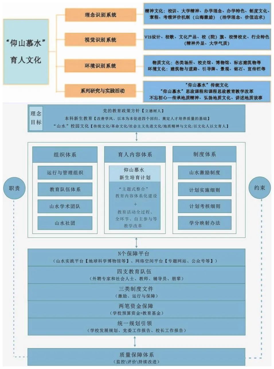 地质工作的性质和特征造就了一代代地质人跋山涉水、寻找矿藏的报国情怀;顶风冒雨、艰苦奋斗的优良品质;脚踏实地、吃苦耐劳的实干精神;勇攀高峰、追求卓越的崇高志向,守山之青、护水之绿的发展理念。这些精神品质在长期的传承、积淀和发展过程中,形成了best365具有深厚底蕴和丰富内涵的山水文化。学校实施“仰山慕水”新生培育计划,大力培育“仰山慕水”育人文化品牌,构建了面向立德树人的“仰山慕水”文化育人体系,该项目获得教育部首批高校思想政治工作精品项目,多次荣获河北省高校思想政治工作优秀案例、校园文化建设优秀成果、宣传思想文化工作创新案例等荣誉称号。