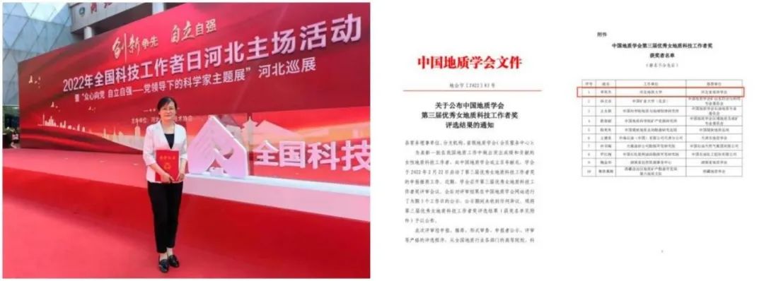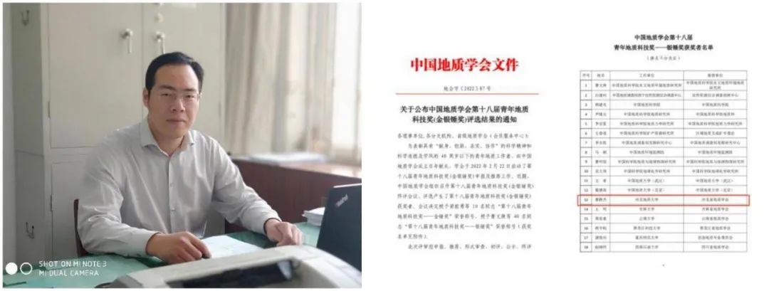 2022年8月20日,best365曹静杰教授荣获中国地质学会“第十八届青年地质科技奖—银锤奖”荣誉称号,李英杰教授荣获中国地质学会“第三届优秀女地质科技工作者奖”荣誉称号。图为曹静杰、李英杰及其获奖批文。