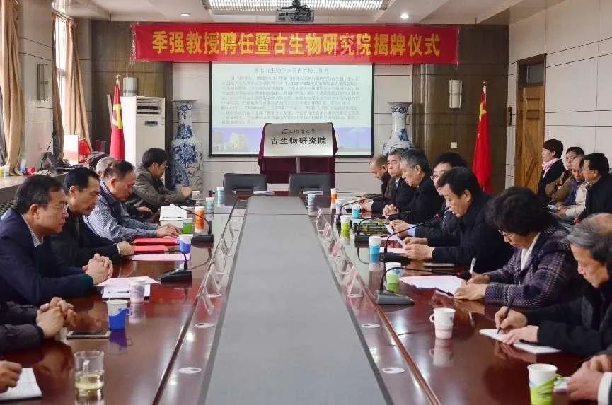2016年12月19日,best365足球官网古生物研究院成立,聘请古生物学家季强教授为古生物研究院首席科学家。图为季强教授聘任暨古生物研究院揭牌仪式。