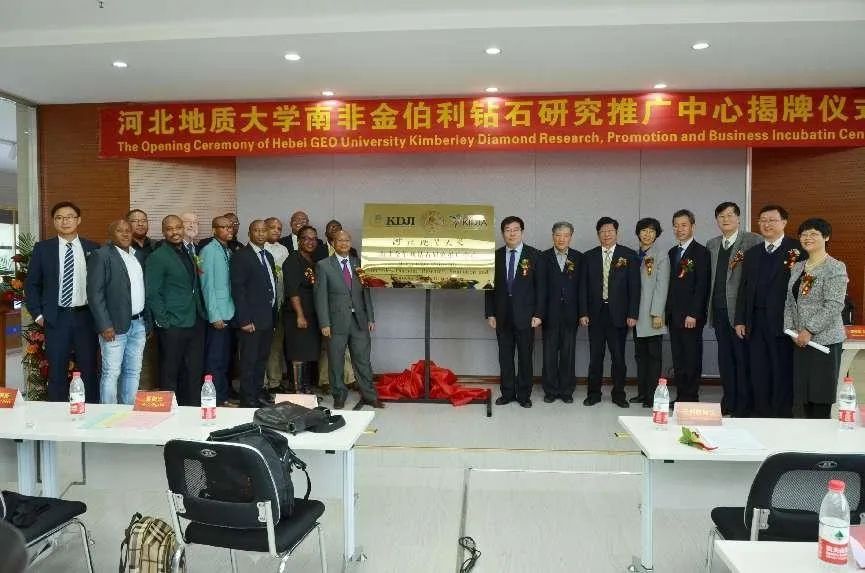 2018年4月14日,南非北开普省代表团一行来访best365,为best365足球官网南非金伯利钻石研究推广中心揭牌。图为揭牌仪式现场。