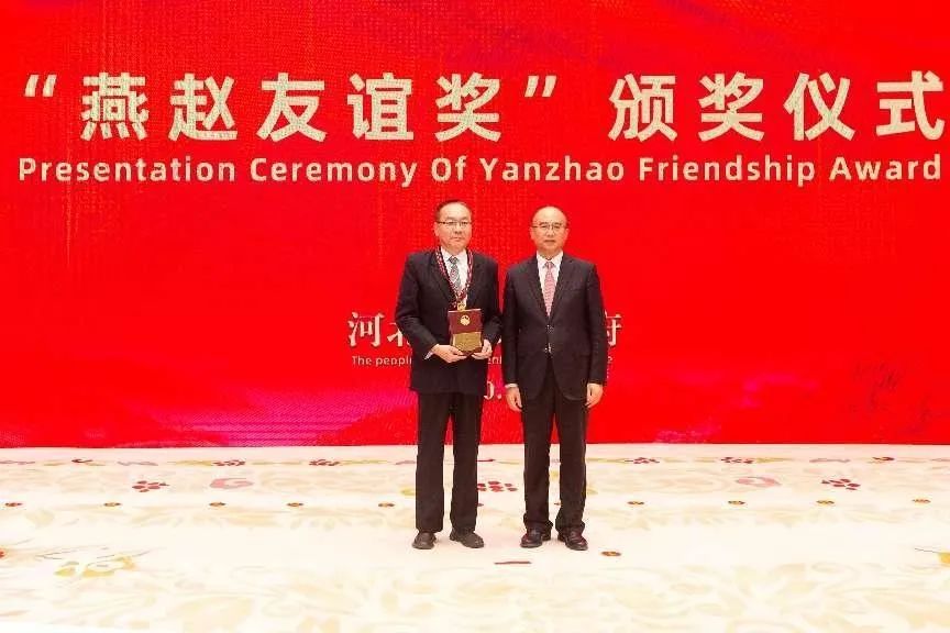 2020年12月9日,学校特聘教授丁毅获“燕赵友谊奖”。丁毅教授是best365第一个获得此项殊荣的外国专家。图为时任省长为丁毅教授颁奖。