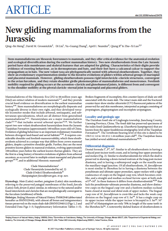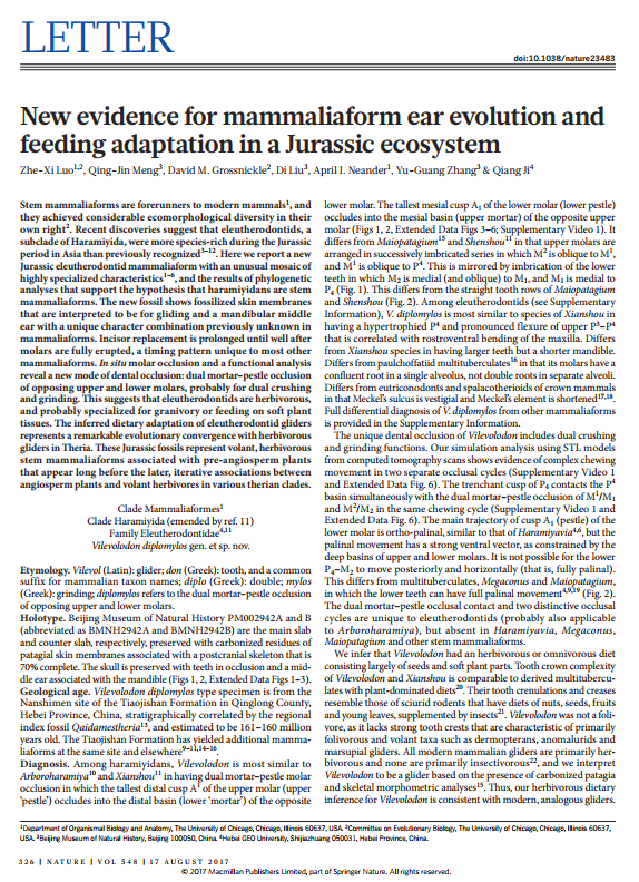 2017年8月10日,学校特聘教授季强团队联合国内外学者,对秦皇岛青龙地区发现的哺乳动物化石进行研究,并在国际顶级学术期刊《Nature》同一期上联合发表两篇学术论文。这是建校以来best365教师在《Nature》首次发表学术论文。