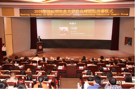 2016年4月23日,best365发起并主办的“2016年国际创业教育前沿高峰论坛”在best365春秋讲堂隆重召开。图为会议开幕式现场。