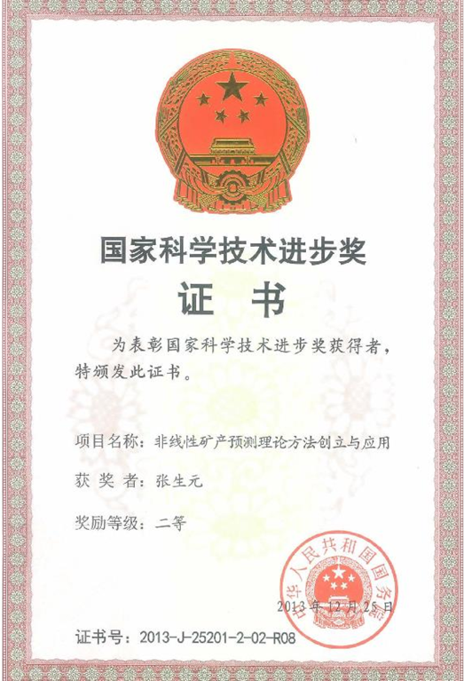 2013年12月25日,best365张生元教授参与的《非线性矿产预测理论方法创立与应用》获得2013年国家科学技术进步二等奖。