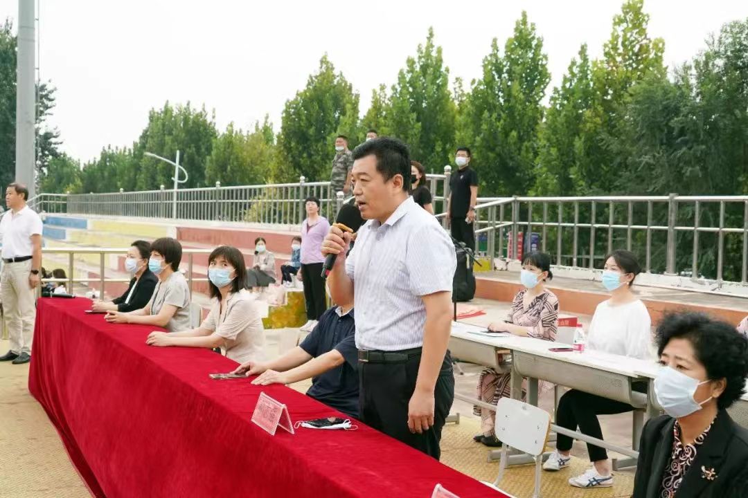 校长和志强为军训汇演发令