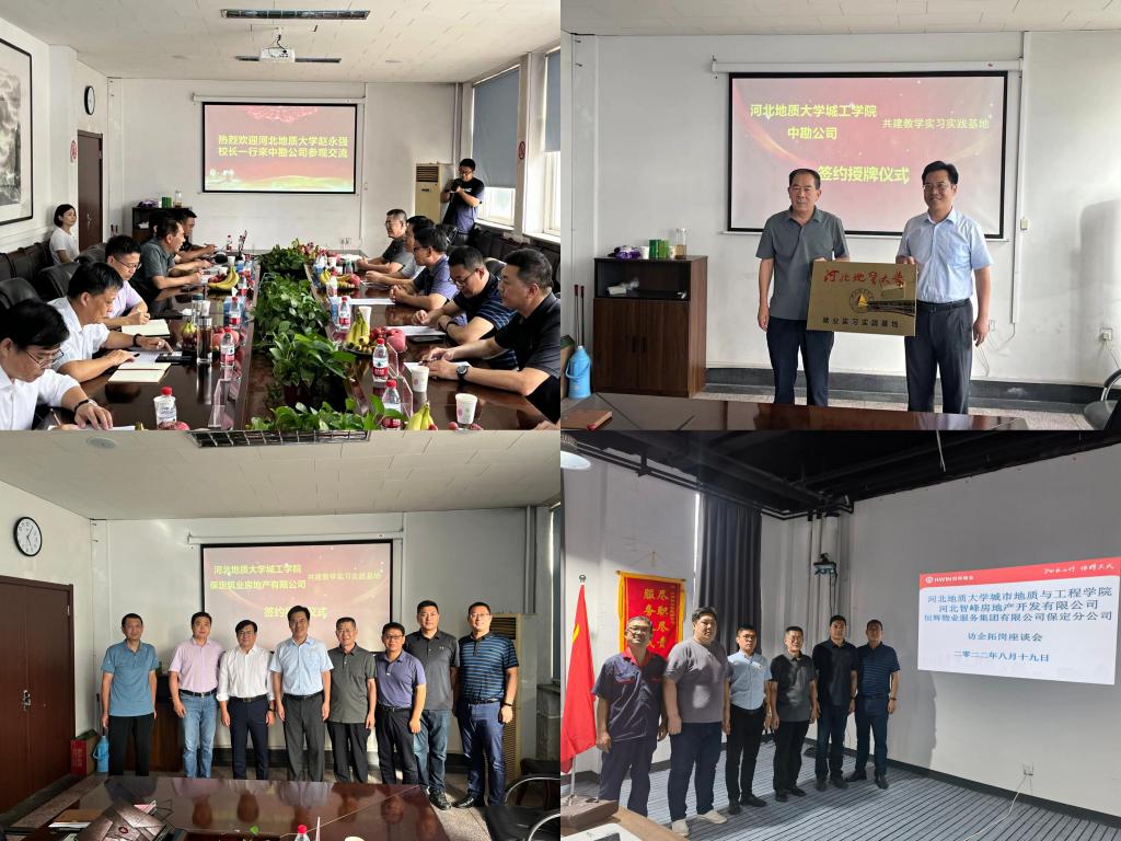 8月19日,副校长赵永强带队赴河北保定开展“访企拓岗”专项活动,分别与中勘冶金勘查设计研究院有限责任公司、保定筑业房地产开发有限公司、河北智峰房地产开发有限公司、恒辉物业服务集团有限公司保定分公司四家单位开展座谈。城市地质与工程学院党委书记张卫华、院长袁颖、党委副书记王辉、副院长贾磊等参加座谈活动。