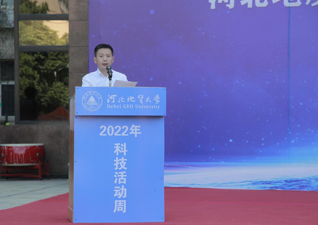 5月21日上午9点,科技周开幕式在主楼前广场隆重举行,校党委副书记侯书文、副校长闫军印、副校长冯鸿雁、副校长王滨、副校长赵永强及部分二级单位负责人出席开幕式,科技处处长董志良主持开幕仪式。