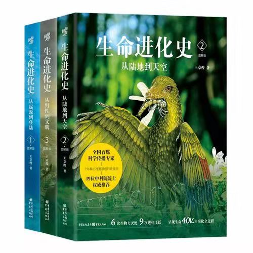 该书先后三次修订增补,历经10年精心打磨,是一套鸿篇巨制。该书包括《生命进化史:从起源到登陆》《生命进化史:从陆地到天空》《生命进化史:从野性到文明》三册,全书共15章,将19世纪的三大发现、20世纪的两大理论和四大模型悉数囊括。书中将“演化”之内涵贯穿始末,将宇宙的演化与生命的演化融为一体,把宇宙学、地质学、物理学、化学、生物学与生命科学有机结合,以6次生物大灭绝事件为节点,9次生命进化飞跃为主线,搭建起完整的生命进化知识体系。全书内容详实生动,文图并茂,知识系统全面,演化关系清晰,比喻贴切,易于理解,汇聚了王章俊老师培养儿童科学思维的许多心得。该著作即将在央视、人民网、新华网等中央主流媒体上发布宣传。