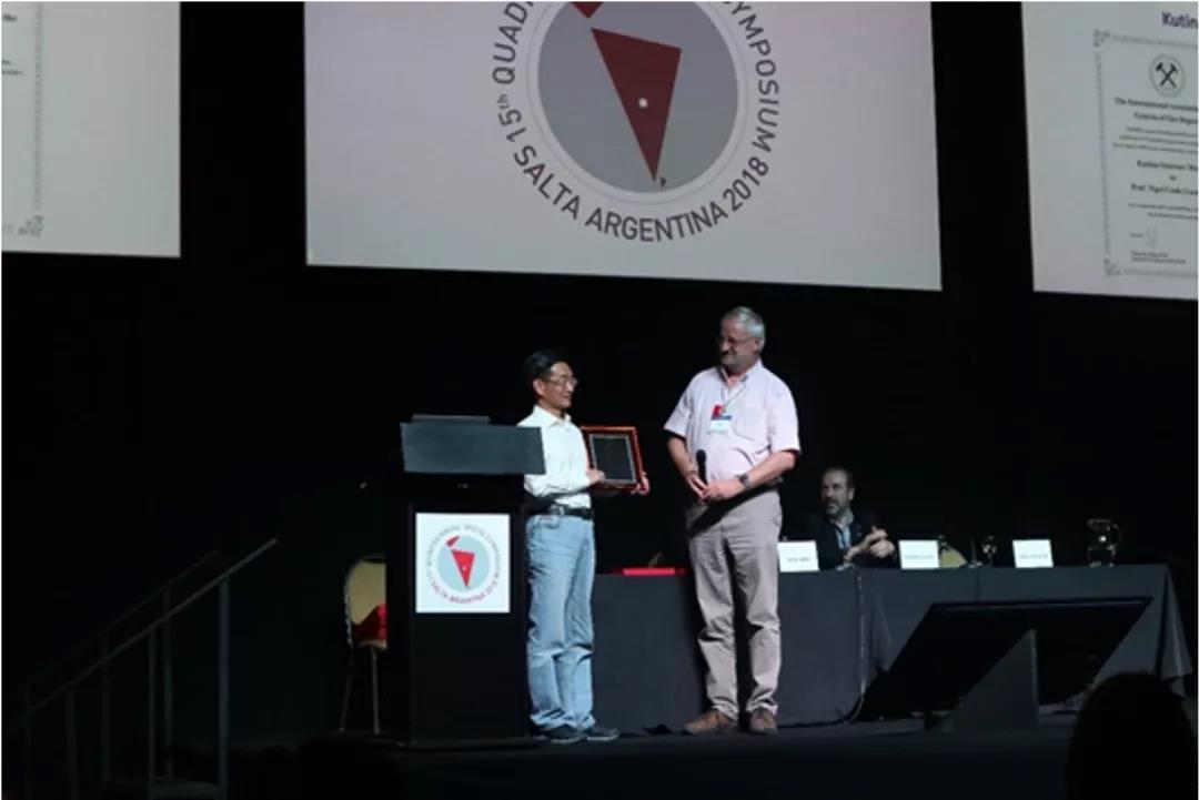 毛景文院士(左一)荣获国际矿床成因协会杰出成就奖