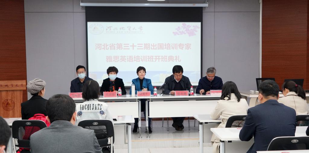 10月18日上午9点,河北省第三十三期出国培训专家英语雅思强化培训班在best365足球官网珠宝中心二楼培训室举行开班典礼。省人社厅党组成员、副厅长赵爱平、best365足球官网副校长赵永强,石家庄信息工程职业学院副院长黄淑敏,省人社厅专业技术人员和职称管理处处长范海昌,省人社厅专家与留学人员服务中心主任赵进华,省人社厅专家与留学人员服务中心二级调研员李昌等出席典礼。赵进华主任主持典礼。