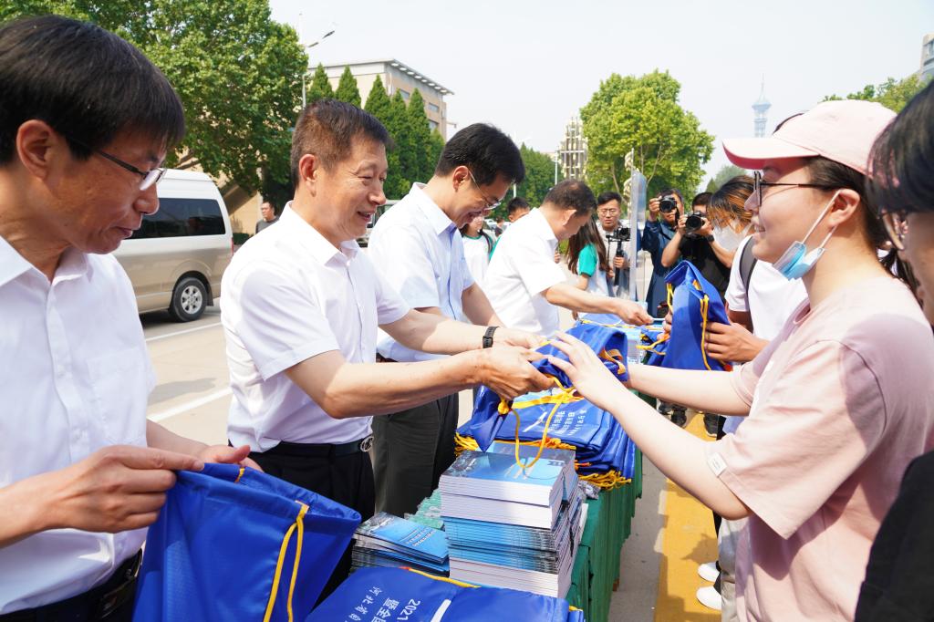 与会领导为师生发放宣传资料