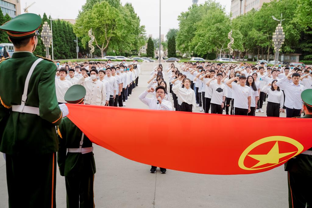早晨7时许,伴随着庄严雄壮的国歌声,鲜艳的五星红旗冉冉升起,“青春心向党 建功新时代”庆祝中国共产党成立100周年特别主题团日活动拉开帷幕。