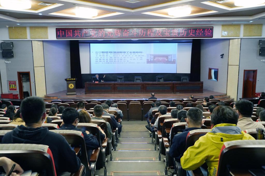 王英杰教授以“百年大党的奋斗历程与宝贵经验”为题,在近两个小时的讲座中,从开展党史学习教育的重大意义、此次党史学习教育的相关规定、中国共产党百年的伟大奋斗创造、百年中国共产党的宝贵历史经验四个方面展开,深入浅出的指出了党中央开展党史学习教育正当其时、非常必要的重大意义,重点剖析了党史学习教育的目的、要求和学习方法,系统介绍了中国共产党百年风雨征程进入了新时代以及带领中国人民实现“站起来、富起来、强起来”的伟大贡献,深刻分析了百年中国共产党成功的宝贵经验,揭示了“中国共产党为什么能”、“马克思主义为什么行”、“中国特色社会主义为什么好”的深刻内涵与内在规律,为全体师生作了一场精彩的党史理论辅导。
