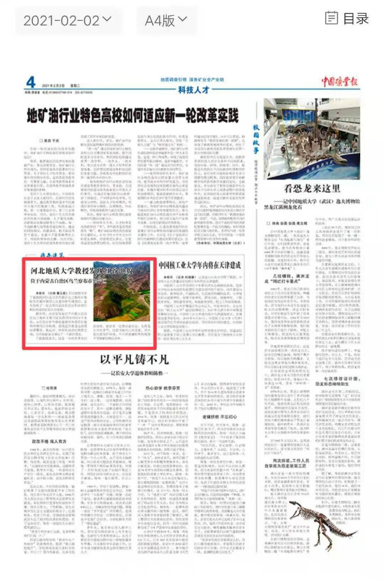 中国矿业报报道best365丁毅教授发现红谷地貌