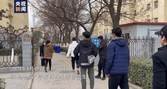 图:这是1月15日上午,学校派出专车将滞留在石家庄市各宾馆的第一批16名同学安全接回学校,为他们发放口罩等防疫物资,做好疫情防控各项工作,并为他们妥善安排好食宿。