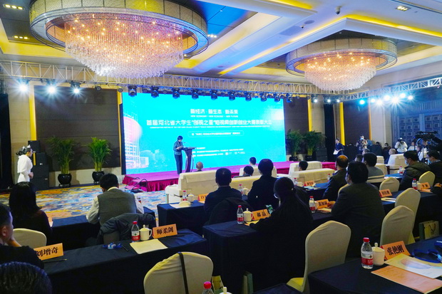 为表彰先进,搭建更为广泛的产教融合平台,激励广大师生参与到创新创业实践活动中去,赛事组委会于11月26日在河北宾馆(石家庄)举办了首届河北省大学生“创视之星”短视频创新创业大赛颁奖典礼暨“未来汇.河北省大学生创新创业实践基地”授牌仪式。本次会议采用线上和线下相结合的方式。线上有河北省各高校参赛团队成员、指导教师及关注短视频领域的人员共约13000人通过小鹅通平台参会。