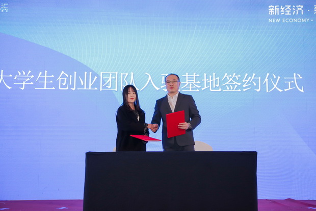 会中,举行了三个仪式。一是获奖团队、优秀指导教师和优秀组织奖的颁奖仪式,其中,获奖学生代表江亚捷、优秀指导教师代表刘增奇也分别作了发言;二是“未来汇.河北省大学生创新创业实践基地”的授牌仪式;三是获奖学生团队、国内知名品牌入驻基地签约仪式。