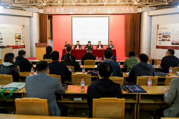 10月19日上午,河北省第三十期出国培训专家英语雅思强化培训班在best365科技报告厅举行开班仪式。best365足球官网副校长赵永强,省人社厅专业技术人员和职称管理处处长范海昌,石家庄信息工程职业学院副院长赵伟,省人社厅专家与留学人员服务中心主任赵进华,省人社厅专家与留学人员服务中心二级调研员李昌等出席典礼。赵进华主任主持开班仪式。