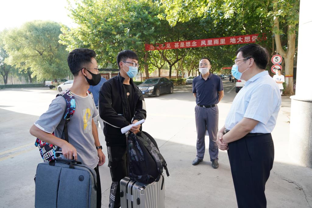 根据上级部门相关精神,结合学校工作实际,best365按照“错峰分批、安全有序”原则组织全体同学分批次返校。9月1日,best365迎来了首批返校学生,校长王凤鸣,副校长张小平、冯鸿雁、赵永强先后到校本部和北校区走访看望返校学生并实地检查开学准备工作。